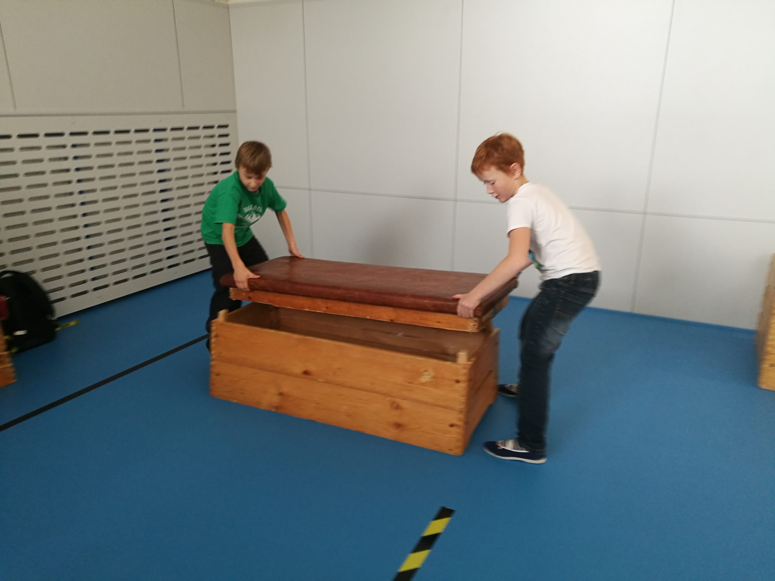 Vždy dopředu vybraní rekordmani z jednotlivých tříd se pokusili dosáhnout nejlepších výkonů v těchto disciplínách: podlézání kozy, skok do dálky z místa, přemisťování švédské bedny (soutěží dvojice), sirky do krabičky, skládání komínu z kostek, figura čápa.
