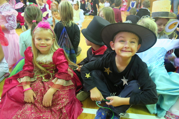 Ve čtvrtek 13. 10.  probíhal celý den pohádkový projekt pro děti z 1. – 4. tříd. I do 1.B přišli ten den do školy místo „ žáčků“  nastrojené princezny, rytíři, čaroděj, kovboj, motýlci a další pohádkové bytosti.