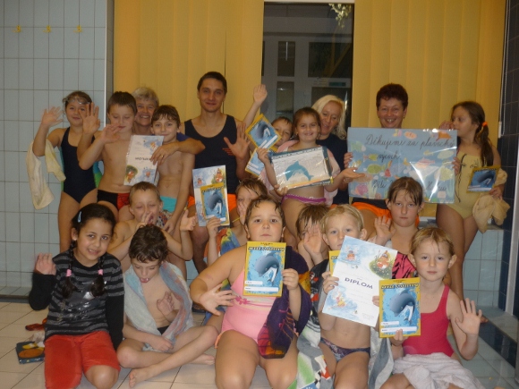 Tak nám to školní plavání skončilo. Na poslední hodině si to ale děti jak se patří užily! Moc se jim ve vodě líbilo a všichni plavali, jako štiky. Hodně dětí se v plavání zlepšilo a byla radost se dívat, jak jim to jde a s jakou chutí skáčí do vody.