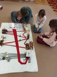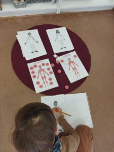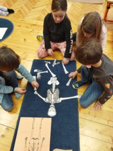 V rámci kosmické výchovy jsme se téměř celý měsíc zabývali tajemstvím lidského těla. Děti si zprvu vyposlechly příběh O Veliké řece, která je součástí každého z nás, a pak se každý zaměřil na to, co jej na člověku zajímalo nejvíc.