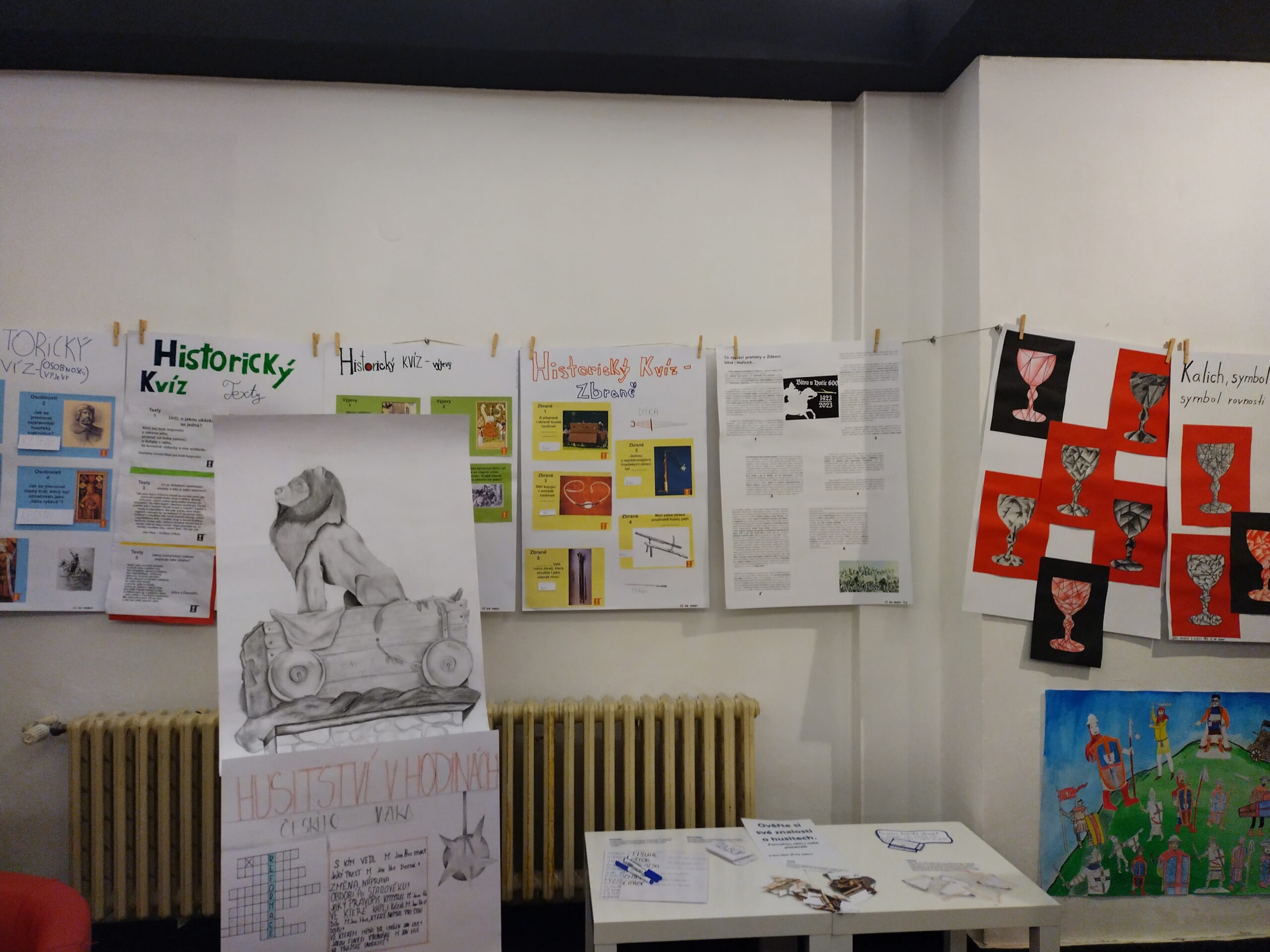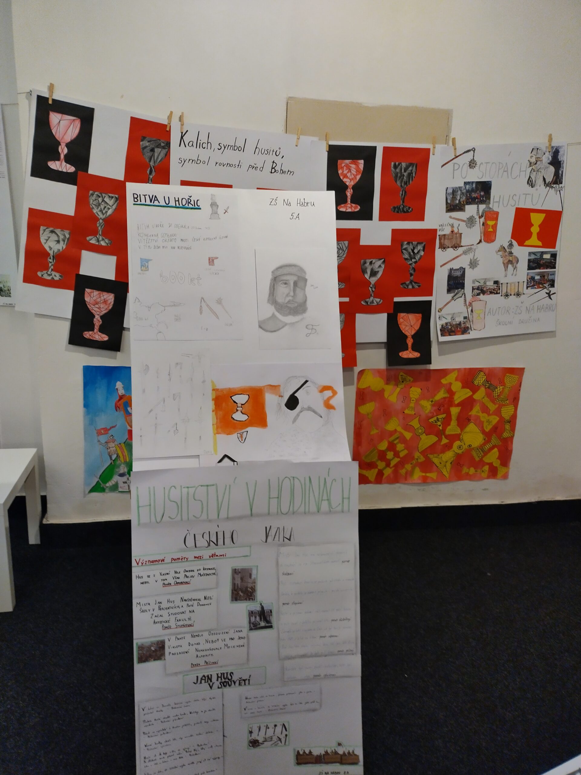 Pokud se v nejbližší době chystáte do Biografu Na Špici, můžete si prohlédnout výstavu zaměřenou na téma husité. Tuto výstavu připravily hořické základní školy u příležitosti výročí bitvy na Gothardu. Z naší školy se zapojili žáci ze všech ročníků. Tématu výročí bitvy na Gothardu a husitům se věnovali nejen v hodinách dějepisu, ale také českého jazyka nebo výtvarné výchovy. Krásné plakáty vytvořily děti ze školní družiny. Na výstavě uvidíte i modely husitských zbraní a své znalosti si můžete ověřit formou her.