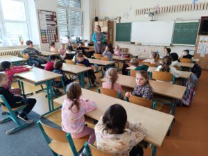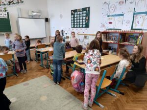 Na Habru jsme dnes přivítali vzácnou návštěvu. Do naší školy se totiž přišli podívat předškoláčci ze všech hořických mateřských školek. A co tu dělali? Spoustu věcí.🙂 Zazpívali si se druháčky, vyzkoušeli sezení v lavicích a hodinu češtiny a počítání s prvňáčky a také se podívali hned do několika pohádek spolu s našimi sedmáky (a ochotnými zastupujícími šesťačkami). Všem Haberákům děkujeme za to, jak se malým kamarádům věnovali, předškolákům pak děkujeme za milou návštěvu, doufáme, že se jim u nás líbilo a že se zase brzy uvidíme. Třeba při dnech otevřených dveří 5. a 6. března.😉