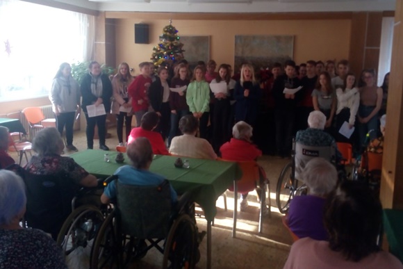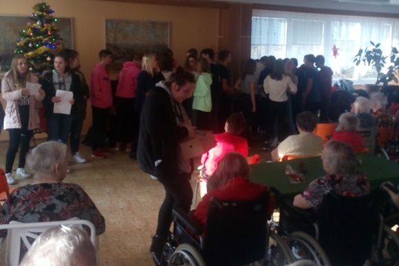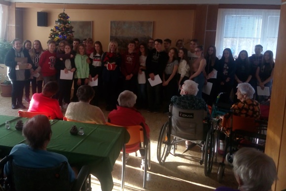 Žáci devátých ročníků využili poslední předvánoční pondělí k návštěvě dědečků a babiček v hořickém Domově pro seniory. Připravili si pro ně pásmo vánočních písniček a také drobné dárečky pro radost. Věříme, že jim tak zpříjemnili slunečné pondělní odpoledne a ukrátili čekání na Vánoce.