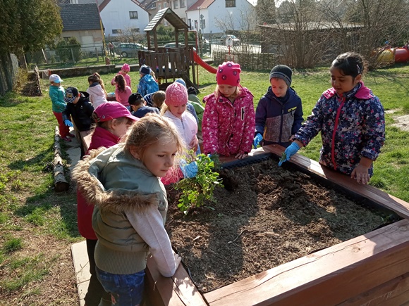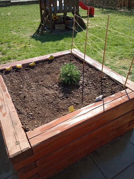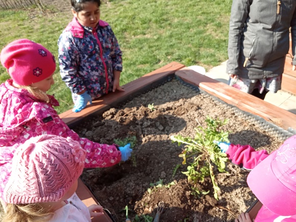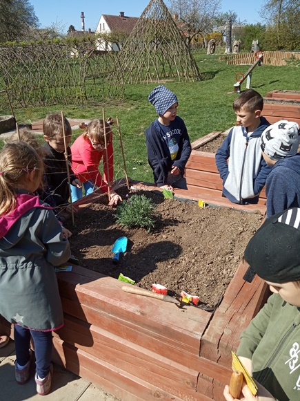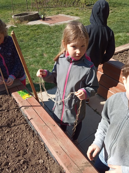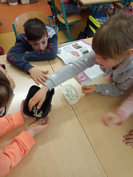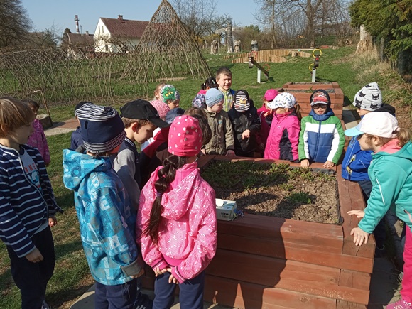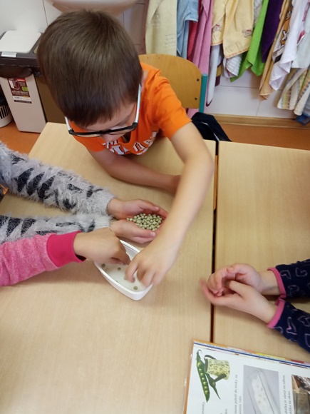 Když jsme se učili písmenko CH, četli jsme si ve slabikáři o tom, jak vypěstovat hrách. Paní učitelku napadlo, že bychom si mohli vypěstovat hrášek a další rostliny. Nejprve jsme, podle pokynů slabikáře, dali hrášek naklíčit. Druhý den jsme si šli připravit záhon. Museli jsme vytrhat plevel, rozhrnout velké hroudy hlíny a vyházet kamení. O několik dní později jsme zaseli ředkvičky, pažitku, petržel, mátu a sadili jsme vyklíčený hrách, který jsme měli ve třídě za oknem, a levanduli. Plánujeme si sadit i keř borůvky, jen potřebujeme zakoupit vhodnou hlínu. Nyní vybíráme místo na školní zahradě.