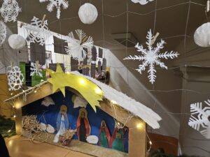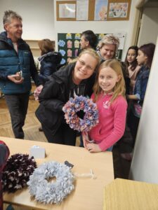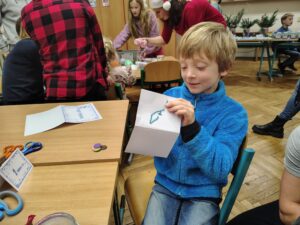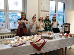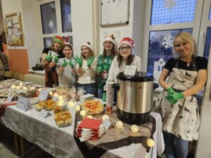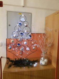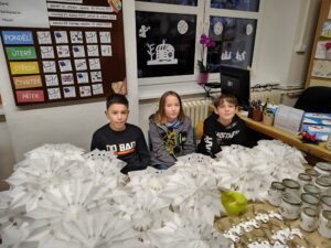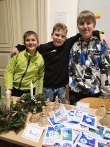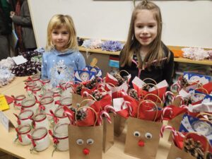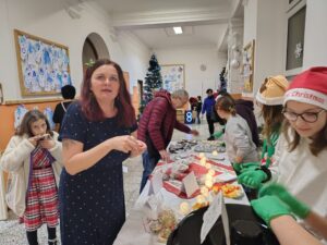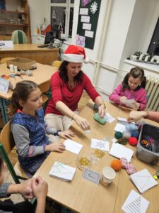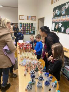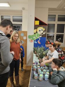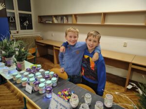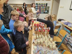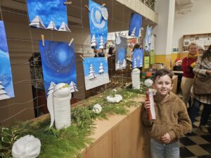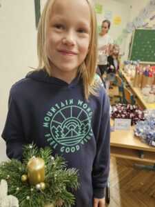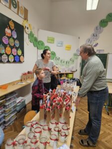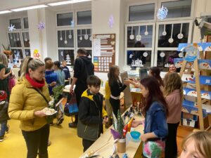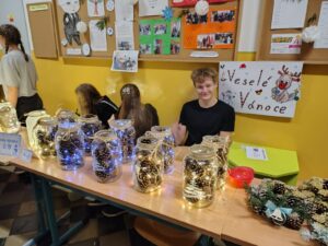 V úterý 3. prosince se naší školou linula vůně vánočního cukroví, pobíhaly tu svátečně oblečené děti a vše se chystalo na dlouho očekávaný adventní trh. Po úvodním slovu pana ředitele, který všem popřál krásný adventní čas, už návštěvníkům nezbývalo nic jiného, než vybrat, který z nepřeberného množství nádherných výrobků koupí jako první. Drobné i větší vánoční dekorace i milé praktické dárečky si připravili žáci od 1. do 9. třídy, o občerstvení se postarali sedmáci pod vedením paní učitelky Hájkové, vánočně laděnou pohádku obstarali žáci 9. B, vánoční tvoření zajistila paní učitelka Pospíšilová. Svátečně vyzdobená škola a zvuk vánočních koled jen dokreslily příjemnou předvánoční atmosféru.