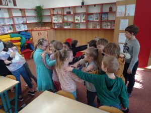 Jak jistě víte, naše škola je již čtvrtým rokem zapojena do programu proti šikaně, který nese název Kiva. V jednotlivých třídách probíhají lekce zaměřené na podporu pozitivního klimatu ve třídě a ve škole, na učení se vzájemnému respektu a toleranci. Dnešní fotografie jsou z lekce ve 2. třídě, kde se děti mj. vyjadřovaly k tomu, kdo jim dokáže pomoci, kdo je podpoří či kdo je rozesměje. Řeč přišla i na prožívání emocí, rovnost mezi dětmi nebo začleňování žáků do třídy. Na konci hodiny se žáci navzájem ocenili a poděkovali svým spolužákům za jejich kamarádství.