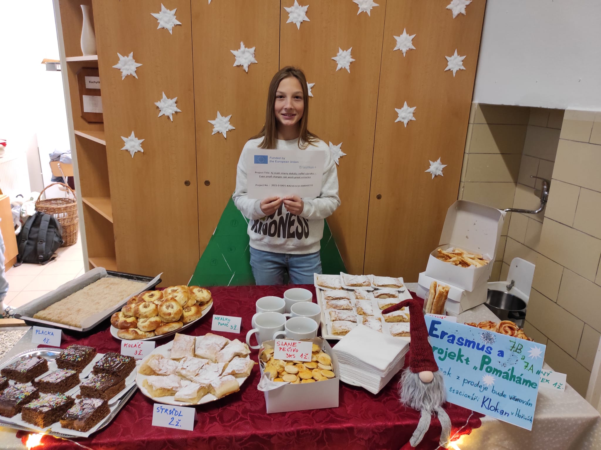V průběhu listopadu a prosince napekly v hodinách vaření vánoční cukroví. A během adventních trhů připravily pod vedením p. uč. Jitky Kateřiny Hájkové pohoštění sladké i slané. Byly realizovány také dvě dílničky, kde si návštěvníci trhů mohli vyrobit za dobrovolný příspěvek na materiál svíčku z včelí plástve nebo vánoční ozdobu z korálků.
