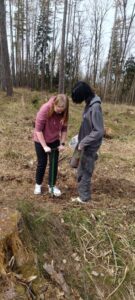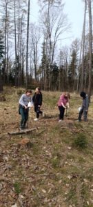Velikonoční prázdniny jsme si prodloužili o jeden den „neučení“. My jsme totiž pracovali. Zasázeli jsme 1500 sazenic borovic na mýtinách v blízkosti Maňovic. Tím jsme pomohli firmě Lesy ČR. Konečnou odměnou byl dobrý pocit a špekáček opečený na ohni. Děkujeme za příležitost být užiteční.