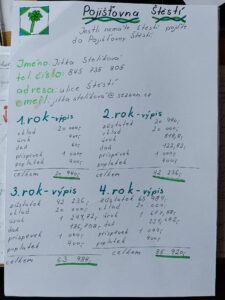 Využili jsme znalosti jednoduchého úrokování, které máme v osnovách matematiky. Žáci tomu věnovali 3 vyučovací hodiny, kdy poctivě počítali pro každý rok stavebního spoření úrok a daň z úroku. V závěru projektu pak vymysleli logo, název stavební spořitelny a sepsali za každý rok výpis z účtu pro svého klienta, kde nesměli zapomenout také na státní podporu a poplatek za vedení účtu.