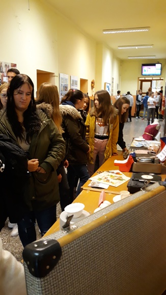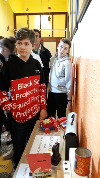 Žáci 9. tříd tak mohli pocítit, jak se v této době žilo, na vlastní oči (někteří možná poprvé) spatřit pověstného mončičáka, nahlédnout do módních časopisů nebo si přímo sáhnout na „příjemné“ materiály, do nichž se odívali jejich rodiče či prarodiče. Celou výstavku nám „soudružky“ okomentovaly a vysvětlily žákům potřebné souvislosti.