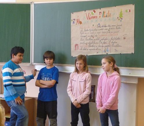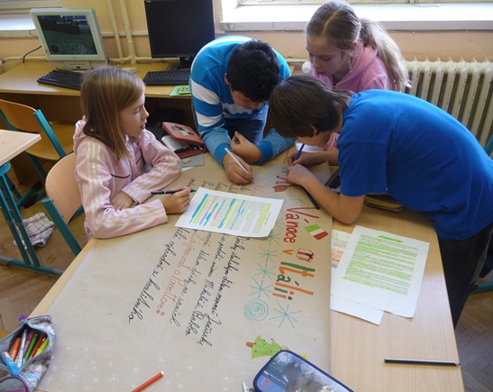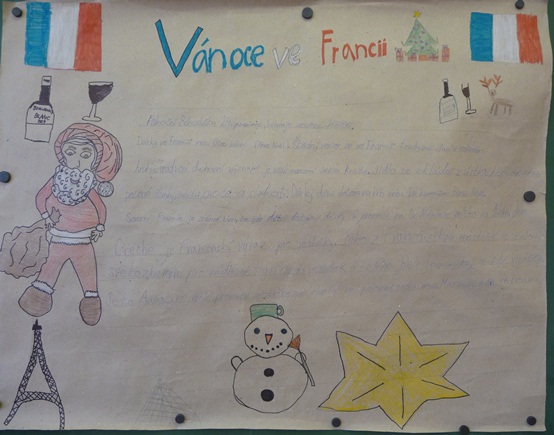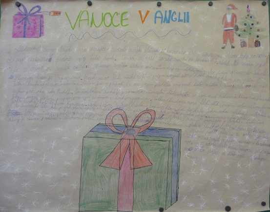 Žáci pracovali celé čtyři hodiny s vysokým nasazením a zaujetím, poslední hodinu prezentovali výsledek své práce – plakát – a informovali spolužáky z jiných skupin o tom, jak se Vánoce slaví v „jejich“ zemi.