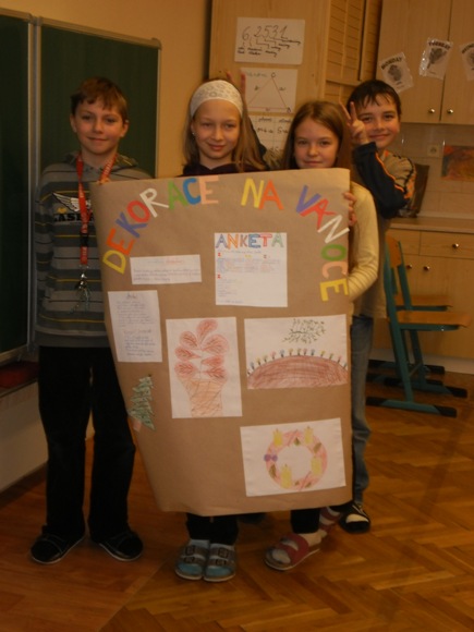 V úterý 21. 12. jsme se se žáky 5. A chtěli nejenom trochu naladit na Vánoce, ale především se o nich dozvědět něco nového, co jsme třeba dosud netušili. Využili jsme proto předvánoční čas k tomu, abychom si zpracovali projekt o Vánocích. Žáci měli dopředu za úkol sehnat si informace k různým vánočním zvykům, dekoracím nebo ke štědrovečerní tabuli. Ve škole jsme si nejprve přečetli, jak Vánoce popisuje B. Němcová ve své nejznámější knize Babička, poté se žáci rozdělili do dvou skupin, které zpracovávali přidělená témata. Uvnitř skupin se pak vytvořily dílčí pracovní týmy a vznikly tak nakonec čtyři skupinky. Jedna se zabývala vánočními zvyky a obyčeji, jedna vánoční dekorací, další se zaměřila na vánoční tabuli a poslední na vánoční koledy. Součástí práce byl i průzkum napříč prvním stupněm, kdy se zástupci skupinek chodili ptát do jednotlivých tříd, jak jsou na tom se zvyky, dekorací, cukrovím… Ze všech zjištěných informací, tj. odpovědí žáků a získaných poznatků o Vánocích, žáci vytvořili pěkné plakáty. Jednotlivé skupinky pak následující den seznámily spolužáky se svými výsledky a ukázaly jim povedené plakáty. Doufám, že práce splnila svůj účel a žáci se tak zase o kousek přiblížili rozkrytí vánočního tajemství. Ráda bych poděkovala všem kolegům z prvního stupně za vstřícnost a čas věnovaný žákům páté třídy při dotazování mladších spolužáků.