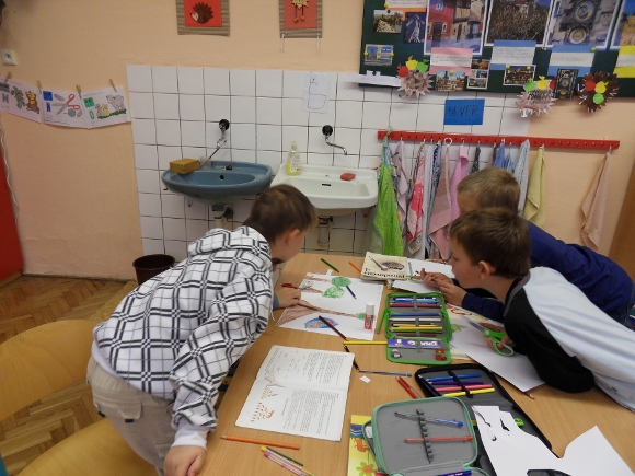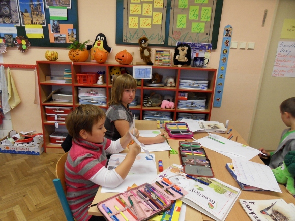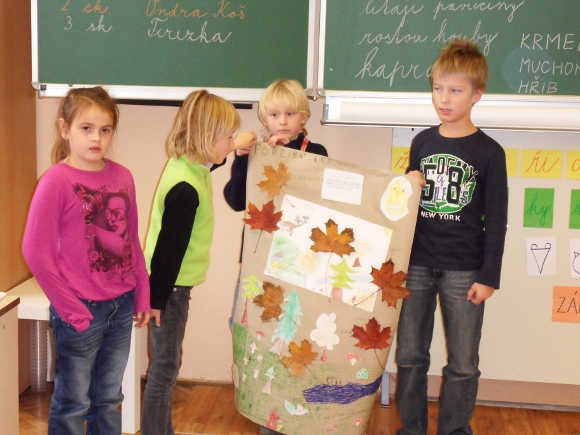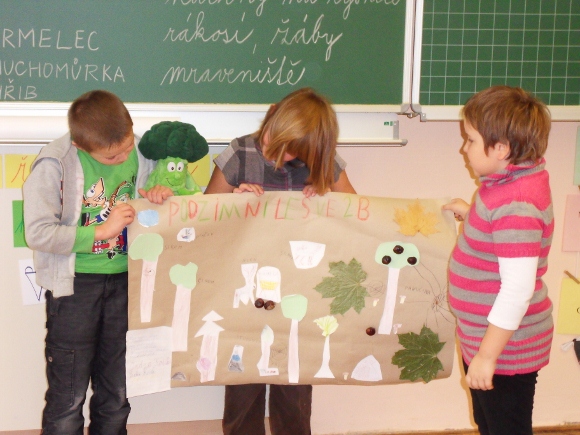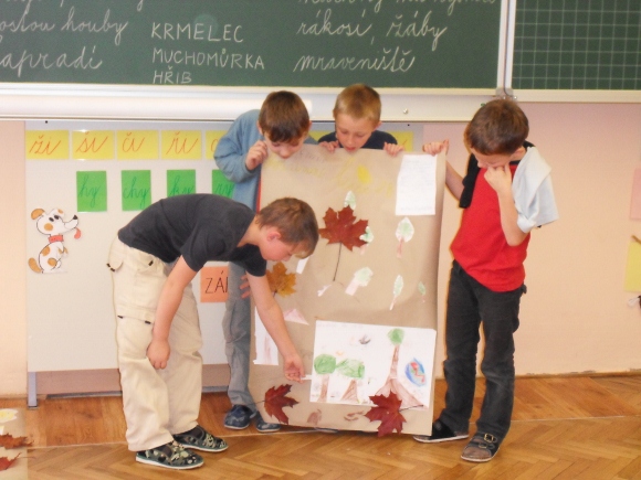 Dnešní den byl jiný. Ráno jsme od paní učitelky dostali dopis, ve kterém byly úkoly pro skupiny. Každá skupinka měla vytvořit plakát: Podzimní les. Ve třídě pracovaly 4 skupiny a všechny podle zadání:
