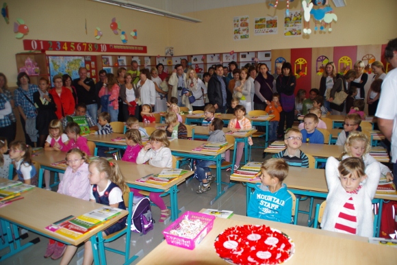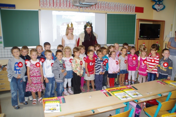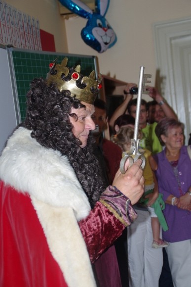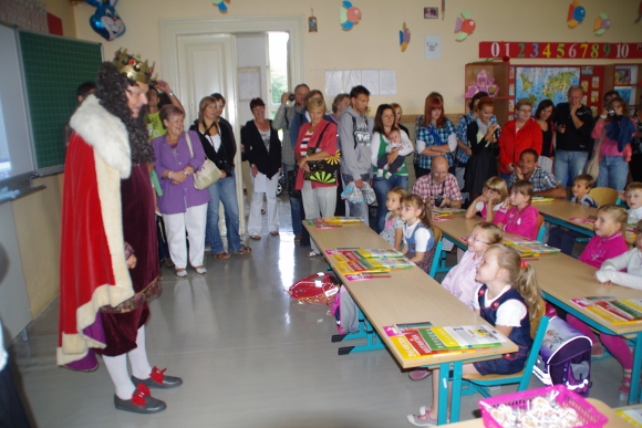 V pondělí 3. září se dveře naší školy poprvé otevřely pro 27 dětí, z kterých se rázem stali prvňáčkové. Přivítat a pasovat na Haberáčky je přišel samotný pan král Jaroslav III. zvaný Moudrý.