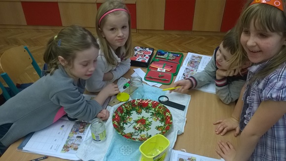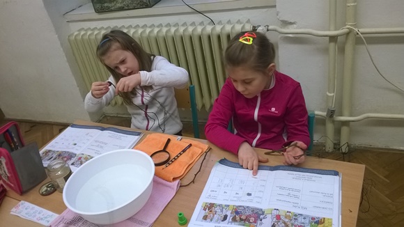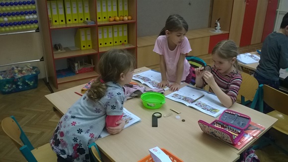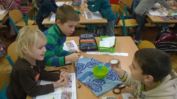 Ve skupinkách jsme zkoumali nejrůznější předměty: sklo, železo, plast a dřevo. Zjišťovali jsme, jaké mají předměty vlastnosti: zda jsou průhledné či průsvitné, jakou mají barvu, jestli plavou na vodě a zda je přitahuje magnet. Vše jsme zaznamenávali do pracovních listů. Práce nám šla od ruky a zvládli jsme ji s nadšením.