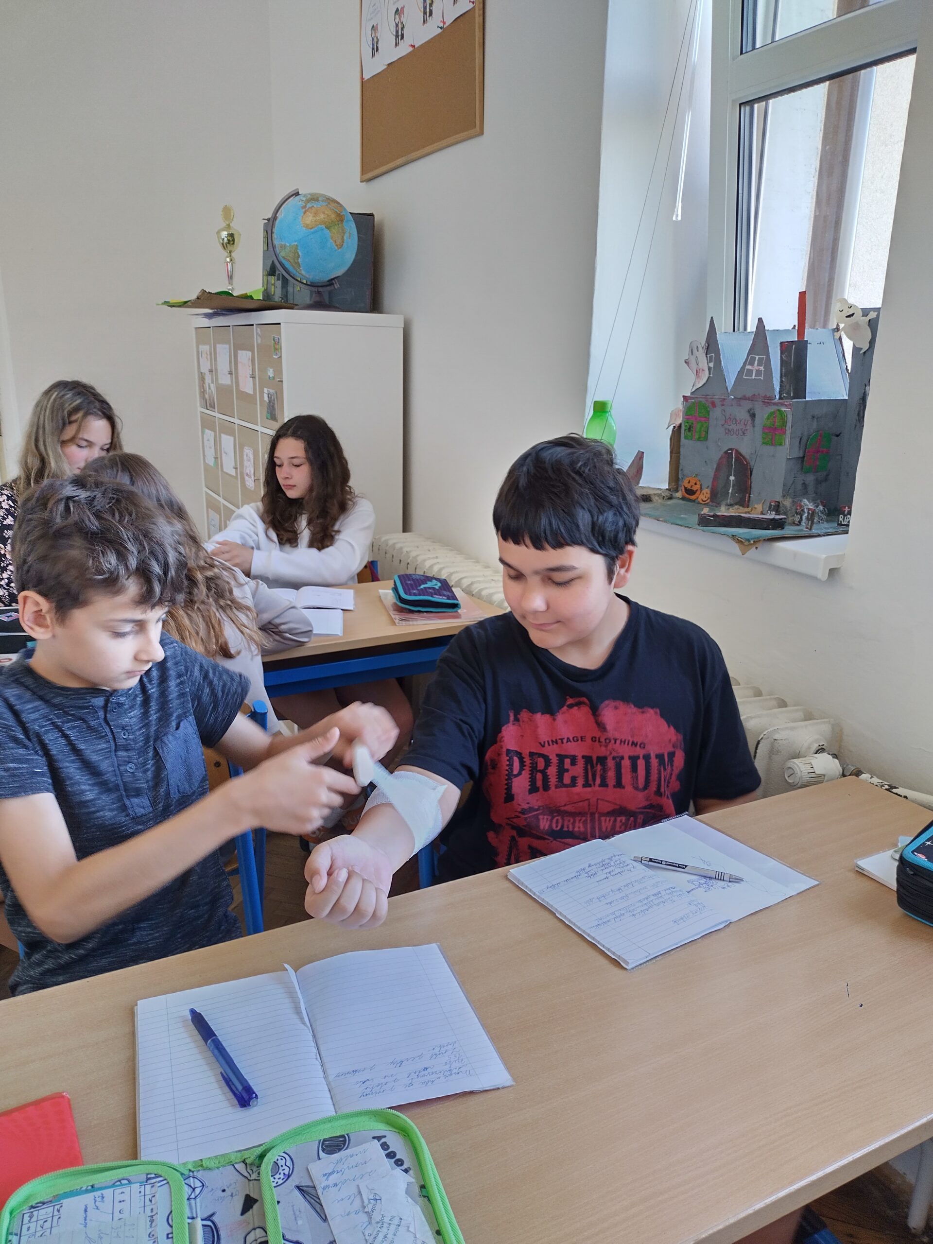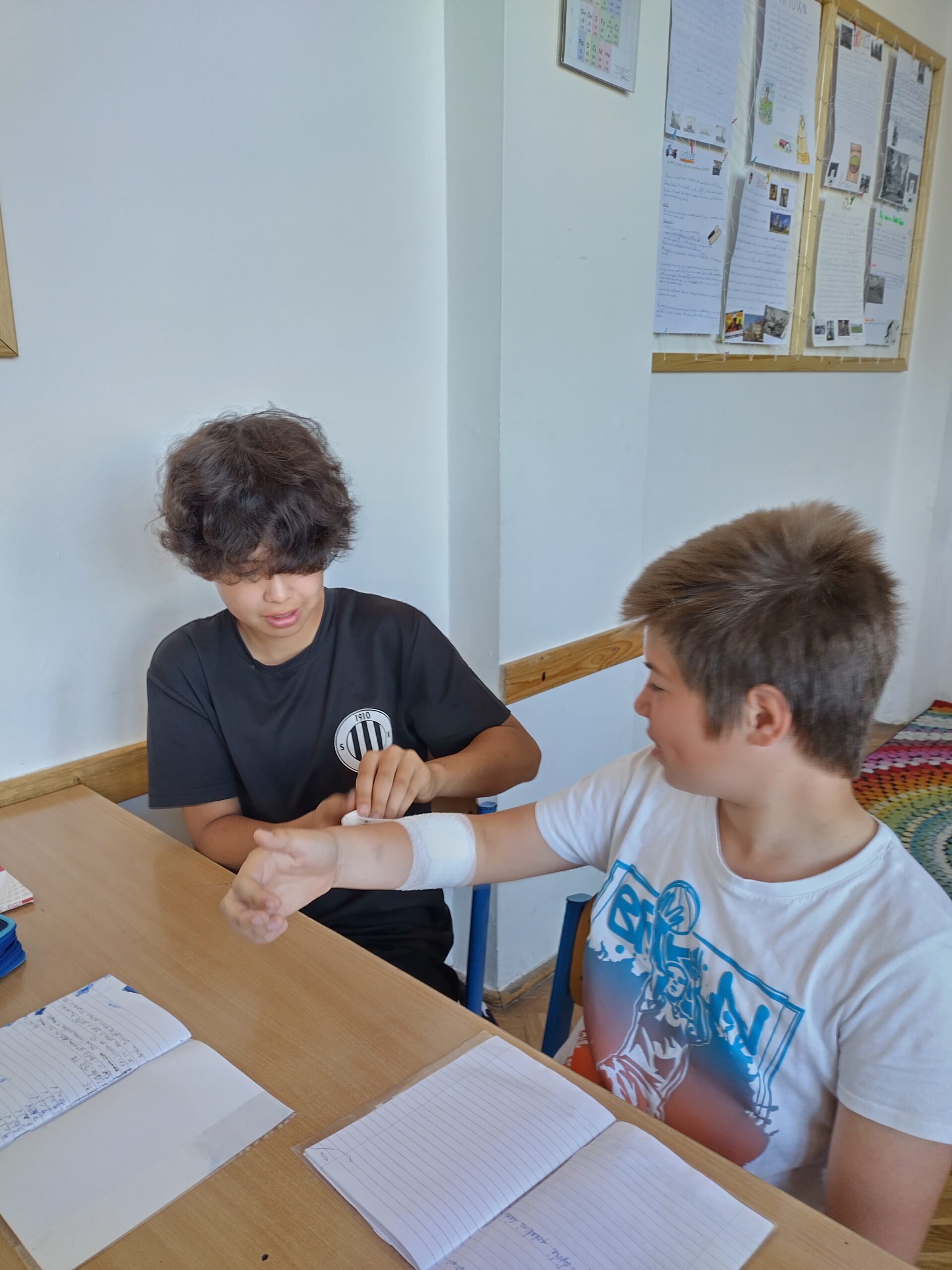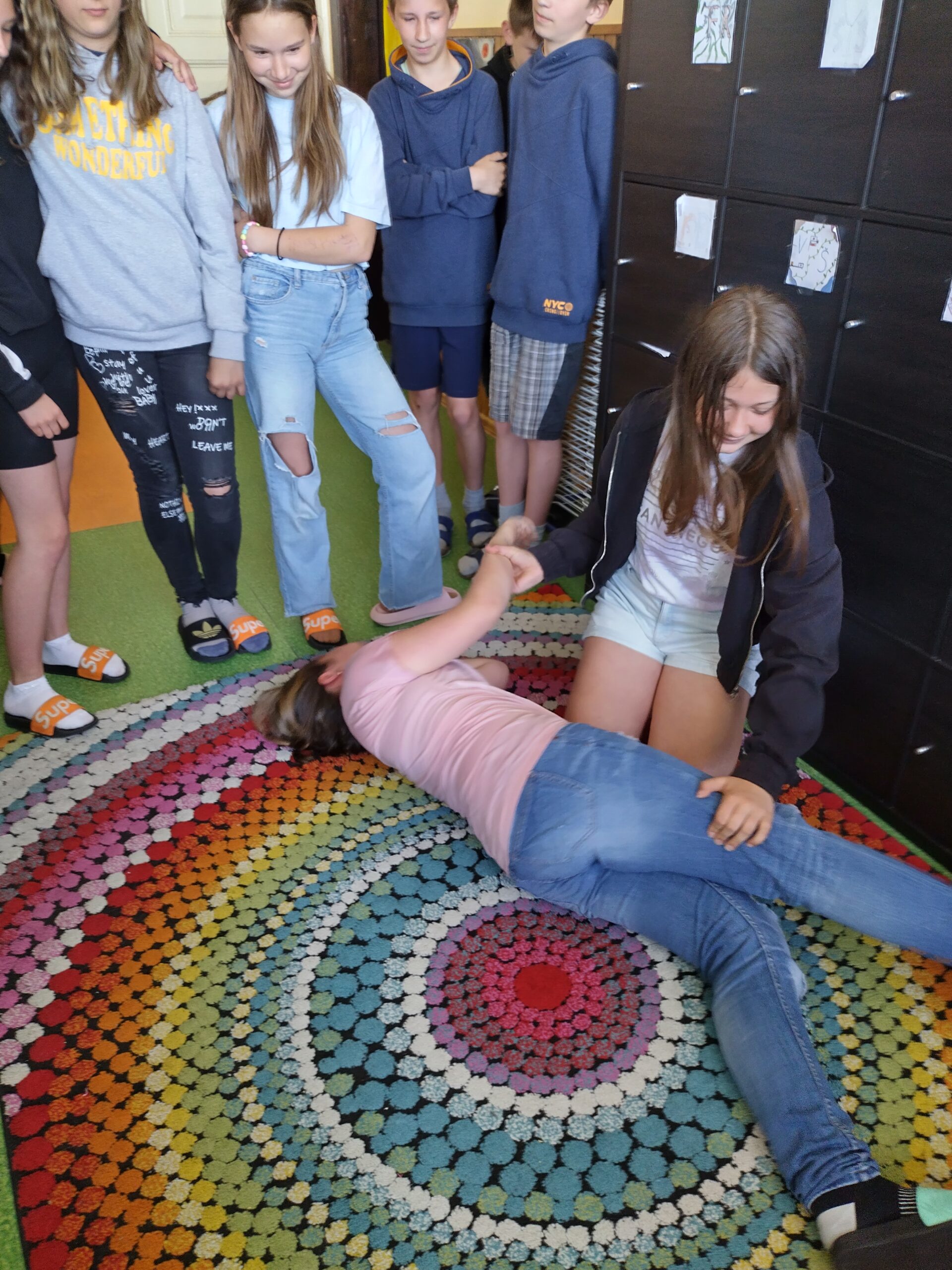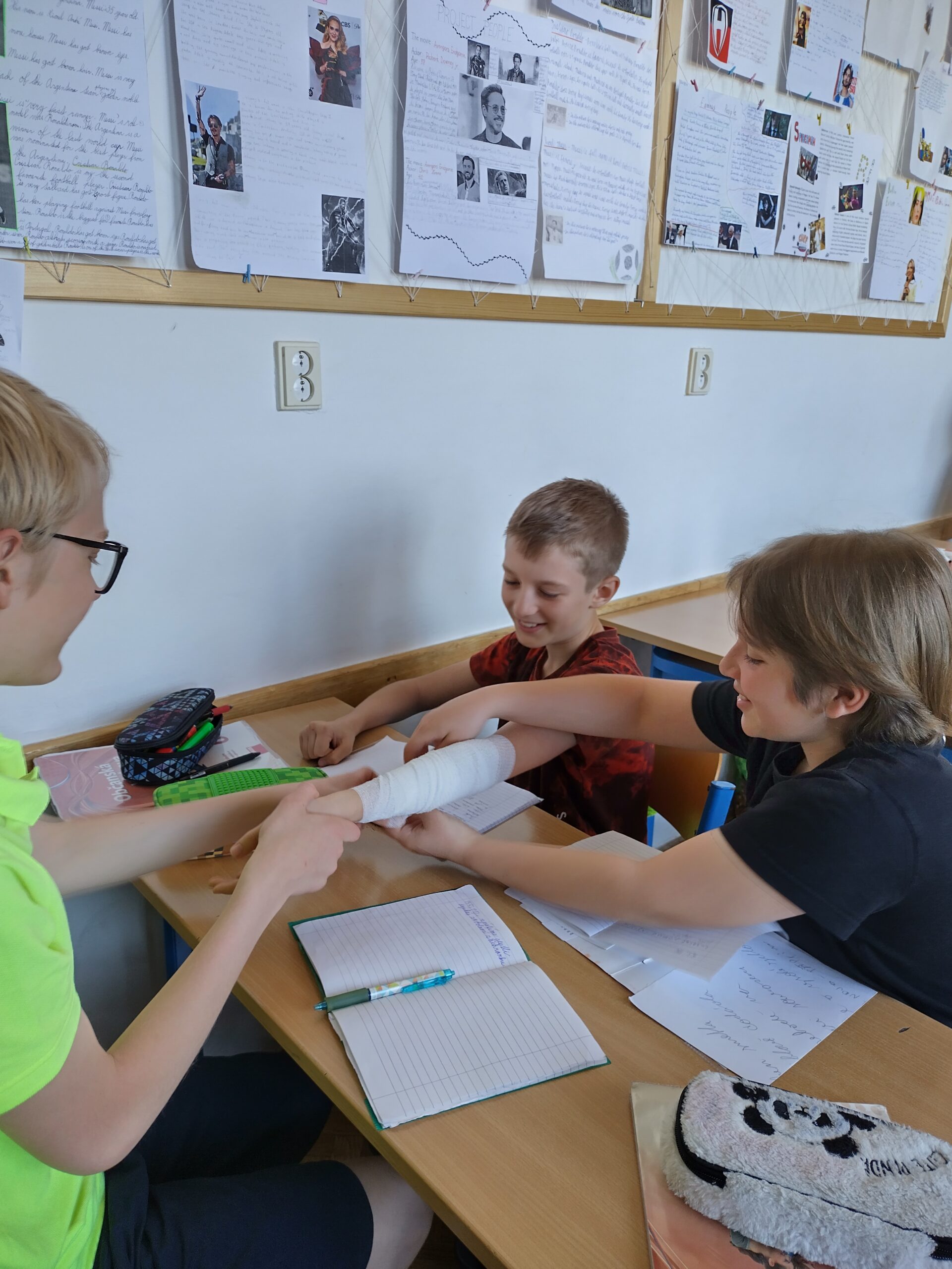 Co dělat, pokud se někdo zraní? Jak poskytnout první pomoc? Jakým způsobem můžeme pomoci člověku při otravě? To vše se nyní učí žáci šestých tříd v rámci občanské výchovy. Vyzkoušeli si např.: jak zjistit zástavu dýchání, nahmatat tep, uložit raněného do stabilizované polohy, nebo ovázat ránu.