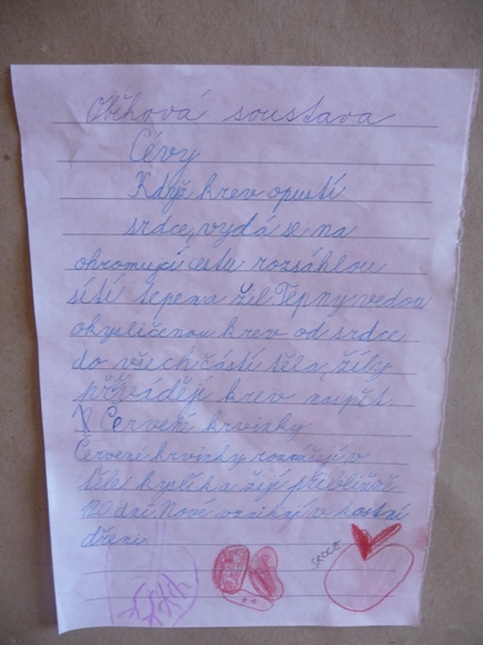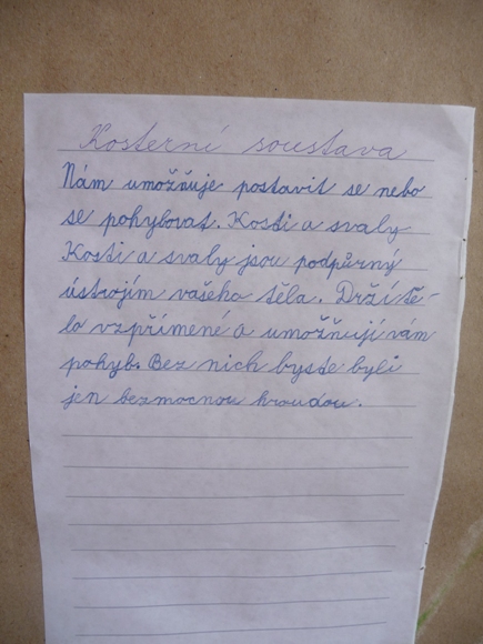 Po jarních prázdninách jsme konečně dokončili skupinovou práci o lidském těle. Pracovali jsme ve čtyřech skupinách. Každá skupina měla za úkol jinou soustavu lidského těla. Všechny skupiny zpracovávali tyto úkoly: