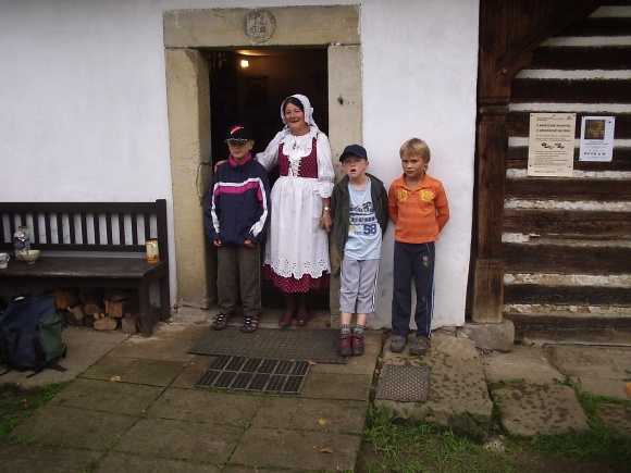 Po zdolání 10 km nás čekalo zajímavé občerstvení — topinky s máslem a česnekem a šípkový čaj připravené na staré peci.