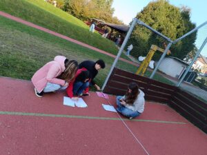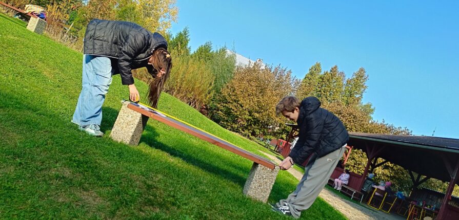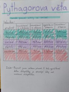 Jak nejjednodušeji ověřit platnost cca 2500 let staré Pythagorovy věty? Vezměte si vhodné měřidlo délky a změřte dvě odvěsny. Vypočítejte si podle vzorce  c2 = a2 + b2 přeponu a poté si výsledek ověřte měřením. Budete stejně překvapeni jako měřiči z 8. A. Pro velký úspěch se přesunula měření i do terénu okolí školy.