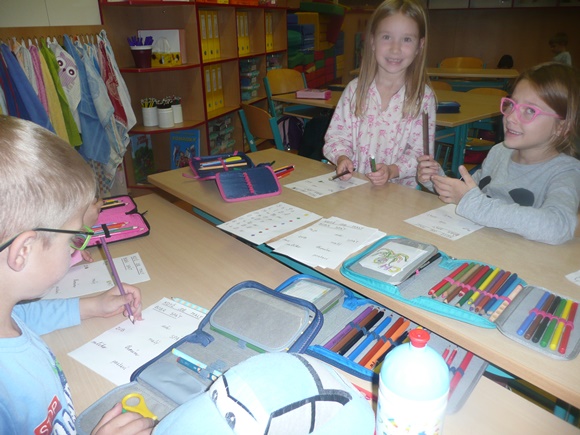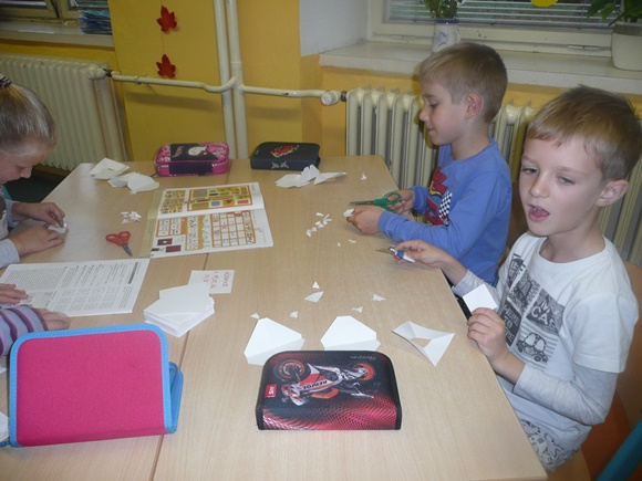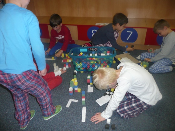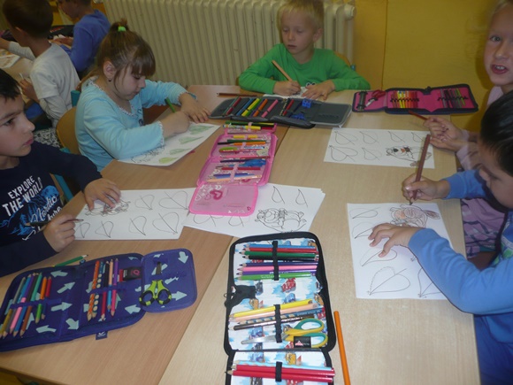 Ve třídě jsme pracovali na různých úkolech na stanovištích. Každý si mohl vybrat, co bude dělat. Podmínkou bylo vybranou činnost dokončit a až poté přejít na jinou. Celkem si děti mohly vybrat ze 6 různých stanovišť. Každému se podařilo projít alespoň 3 činnostmi, někomu i více. Poslední hodinu jsme poslouchali pohádku od Josefa Čapka O pyšné noční košilce a kreslili k ní ilustraci. Odměnou za celým pyžamovým dnem byl diplom, drobná sladkost a pocit, že jsme si to užili.