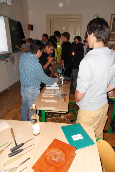 Důkazem toho je nárůst počtu studentů na některých středních školách. Jednou z nich je Střední umělecko-průmyslová škola hudebních nástrojů a nábytku v Hradci Králové. Zástupci této školy dokonce přijeli k nám do školy, aby svoji školu a její nabízené obory představili a zejména předvedli 3 praktické ukázky práce se dřevem. Tu si zkusili i 3 naši žáci – Pavel, Ondra a Matyáš. S menší dopomocí si vytvořili dřevěnou misku, rámeček a ozdobný stojan na lahev vína.