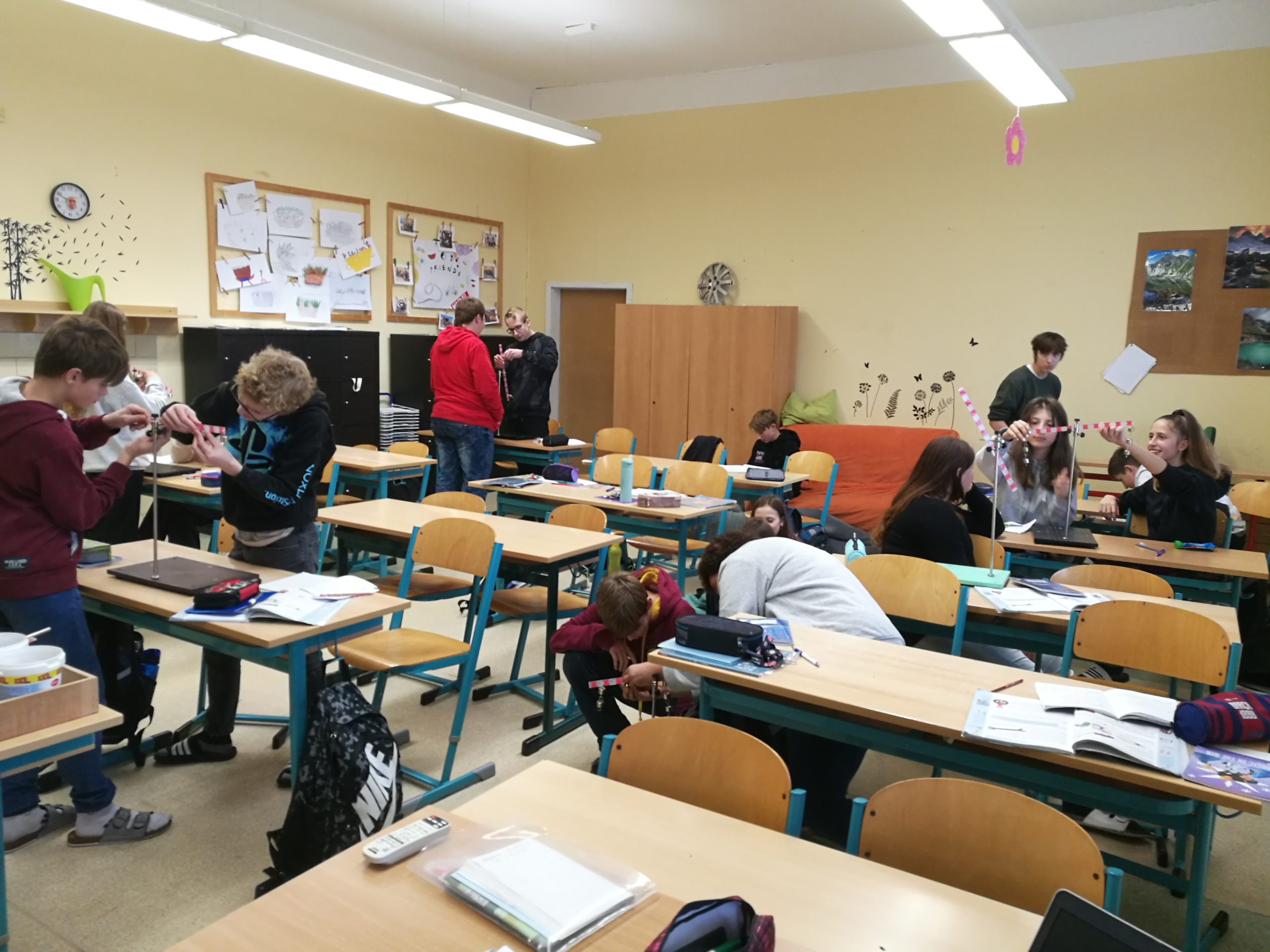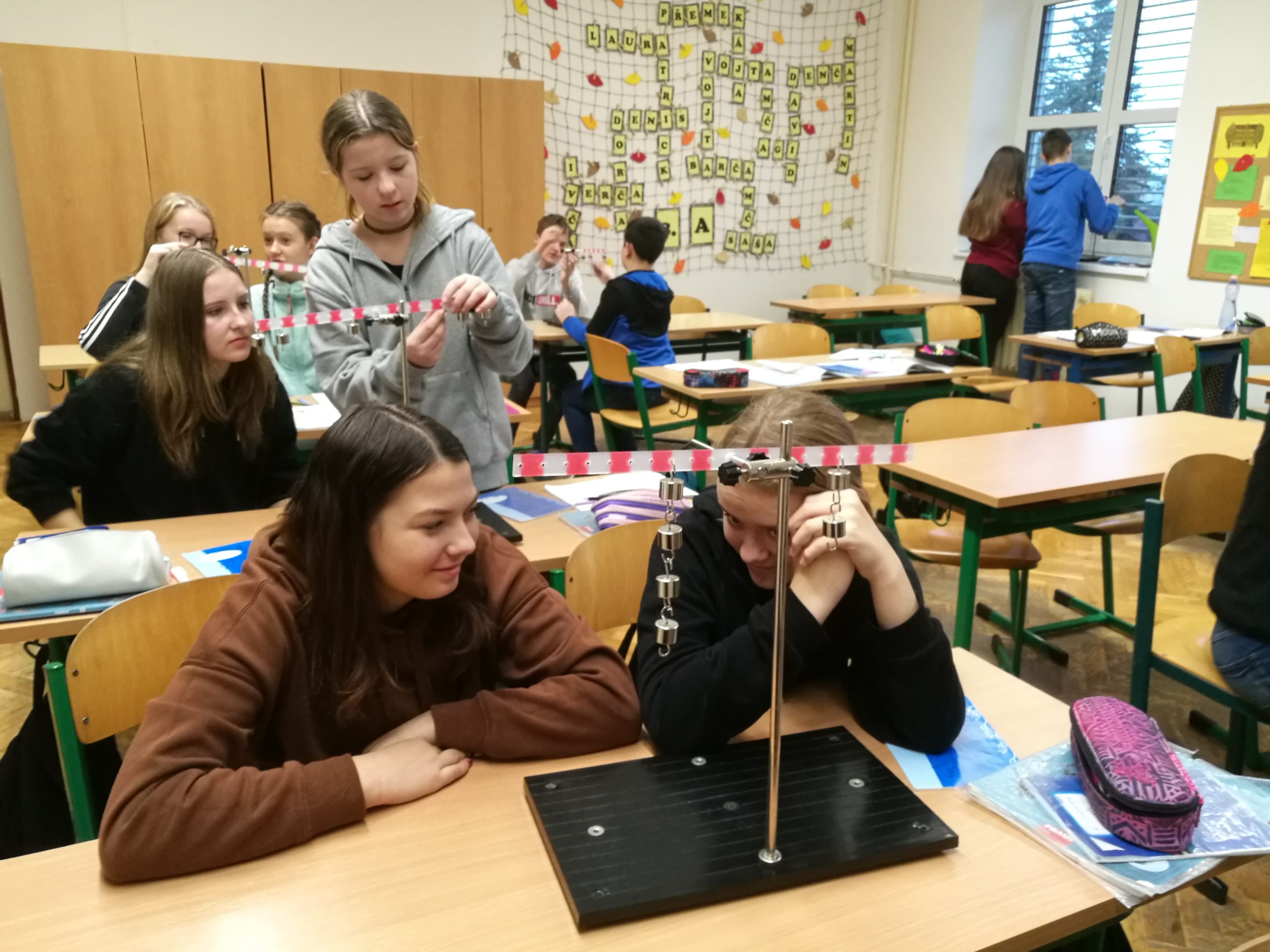Není nic složitého na tom, posadit dvě stejně těžké děti na houpačku do stejné vzdálenosti. Ale jak těžké, popř. lehké, to bude v běžnějším reálném případě, kdy váží děti různě? V tomto duchu probíhala laboratorní práce v 8. ročníku, kde žáci sestavovali situace tak, aby došlo k rovnováze na páce. Cílem této aktivity byla nabytá zkušenost, že rovnováha nezávisí pouze na tíze (síle) tělesa, ale i na délce ramene, neboli vzdálenosti působiště od osy otáčení. „Hodina nás bavila, protože jsme si místo učení hráli.“