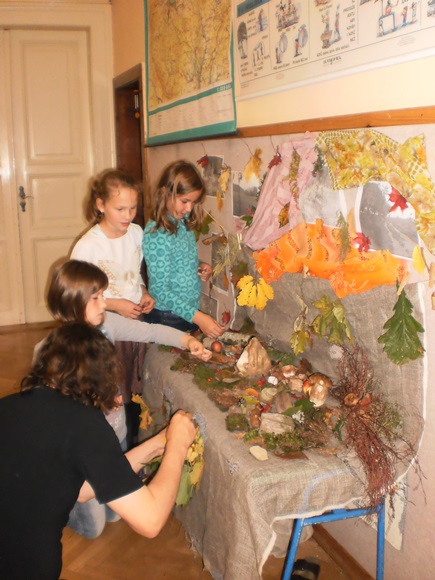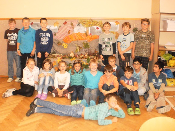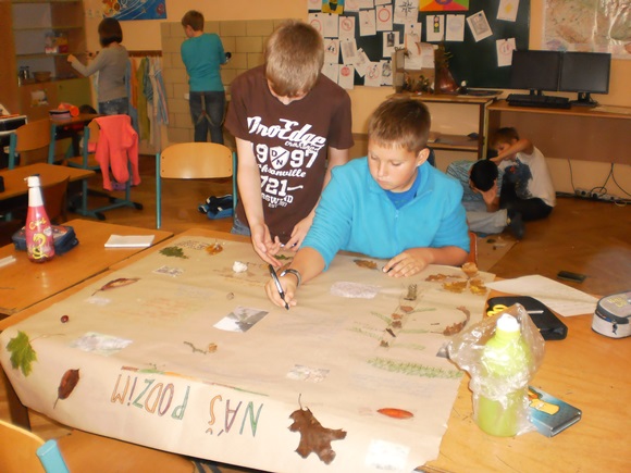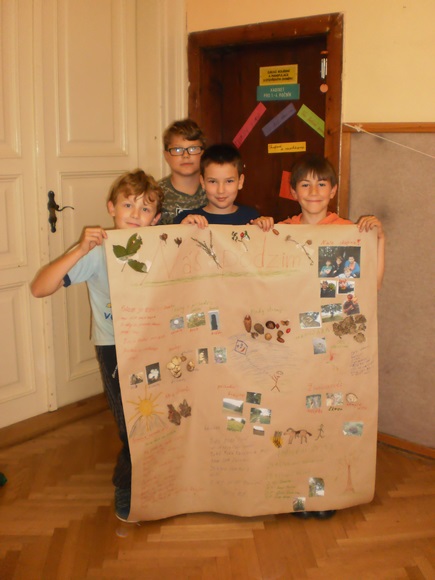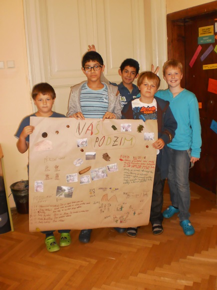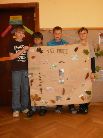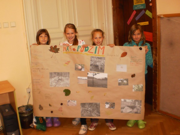 Žáci 5. B otevřeli svůj projekt “Čtvero ročních dob” podzimem. Snažili se jeho atmosféru nasávat všemi smysly při svém putování místní krajinou. Podzim byl nejen viděn, ale také slyšen, cítěn a nahmatán. Žáci zaznamenávali nejen obraz krajiny, ale i její segmenty. Sbírali také stopy podzimu, které jim nadělil (listy, houby, plody…) Další den se podzim pro žáky stal slovem, obrazem, ale i hudbou, když o něm podávali své svědectví. Podzim vstoupil do jejich třídy formou koláží, ale i výročním stolem, který byl vytvořen z nasbíraného materiálu. Podzim se objevil v jejich třídě a člověk se jen divil, jak s nimi rozmlouval.