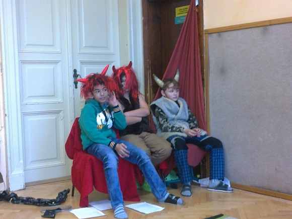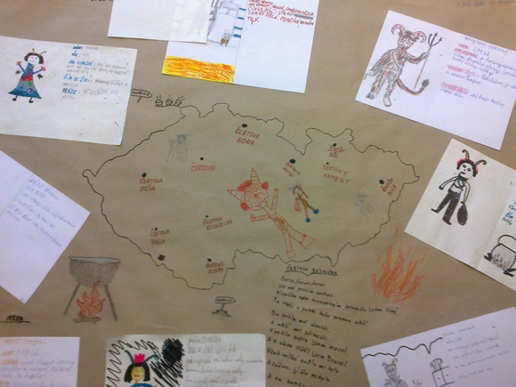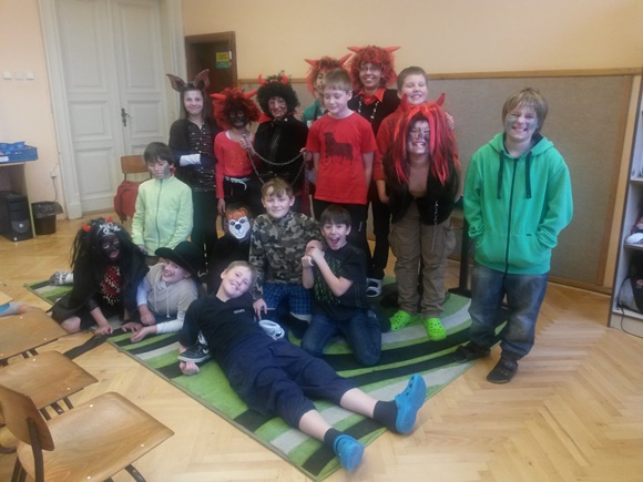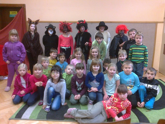 Ve čtvrtek 11. 12. bylo v 5.B peklo. A to doslova! Páťáci se totiž proměnili na čerty a čertice, protože právě jim byl celý projekt určen. A tak jsme si o čertech povídali, popisovali jejich vzhled a vlastnosti, skládali o čertech básničky, četli pověsti, ve kterých čerti vystupují, hledali na mapě České republiky místa, která jsou po čertech pojmenovaná, vysvětlovali si rčení, ve kterých se vyskytuje slovo čert… Ale především jsme hráli “Čertovskou pohádku”. Žáci si dokázali během pouhých dvou! dnů rozdělit role, přichystat masky a kostýmy, naučit se zpaměti text a sehrát pohádku o hloupých čertech a mazaném ševci. A protože bylo čím se pochlubit, předvedli pohádku hned několika třídám z 1. stupně. Páťákům patří velká pochvala za perfektní přípravu projektu a parádní herecké výkony.