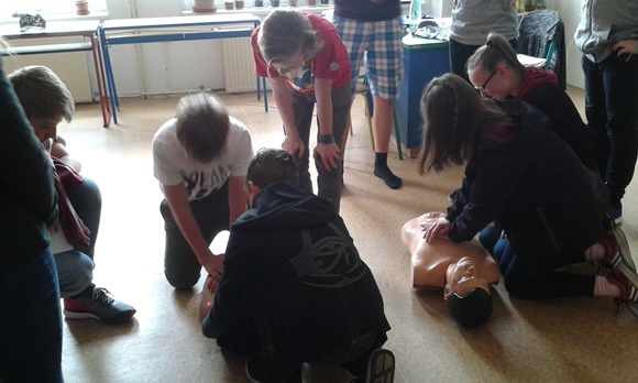 Do situace, kdy je člověk postaven před nelehký úkol poskytnout první pomoc, se může dostat kdykoli kdokoli z nás. A nezáleží na tom, zda je dospělý nebo ještě “dítě školou povinné”. A aby si s tímto náročným úkolem dokázali poradit i žáci sedmých tříd, zavítali jsme v uplynulém týdnu na Hořické gymnázium, jehož žáci a učitelé si pro hořické sedmáky již poněkolikáté připravili zdravotnický kurz.