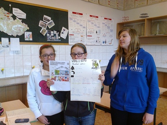 Pro velký úspěch se i letošní sedmáci v rámci učiva matematiky zdokonalili nejen v oblasti procent. Příkladů z učebnice a pracovního sešitu jsme se napočítali dost, tak vzhůru do reality. Skupinky po třech měli zpracovat výpisy pro šest let stavebního spoření. K tomu si vymysleli název spořitelny, své logo, fiktivního poradce a hlavně svého klienta, kterému pak budou výpisy odesílat. I když to bylo práce na tři hodiny,klidně by pro nějakou banku mohli už teď pracovat, protože klienta by nikdy neošidili:o)) Na závěr proběhly prezentace, kde se jednotlivé banky předháněly v tom, kdo naláká více klientů!!!