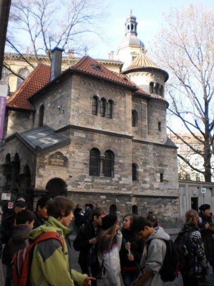 Naše prohlídka židovského města začala u Maislovy synagogy, kde jsme si připomněli základní informace o židovství. Dále jsme pokračovali kolem Staronové synagogy, nejstarší dochované synagogy v Evropě. V Pinkasově synagoze žáci žasli nad množstvím jmen na stěnách, která připomínají nacistické oběti v Čechách a na Moravě. Nejvíce na žáky zapůsobila expozice dětské kresby v patře Pinkasovy synagogy, kde viděli obrázky dětí z koncentračního tábora v Terezíně. Emoce, které z těchto obrázků vyzařují, všechen strach a úzkost terezínských dětí, zapůsobily snad na každého z nás. Posléze jsme se podívali ještě do Klausové synagogy a na starý židovský hřbitov. U hrobu rabiho Lewa každý z nás položil lísteček s tajným přáním. Tak doufejme, že se nám vyplní…