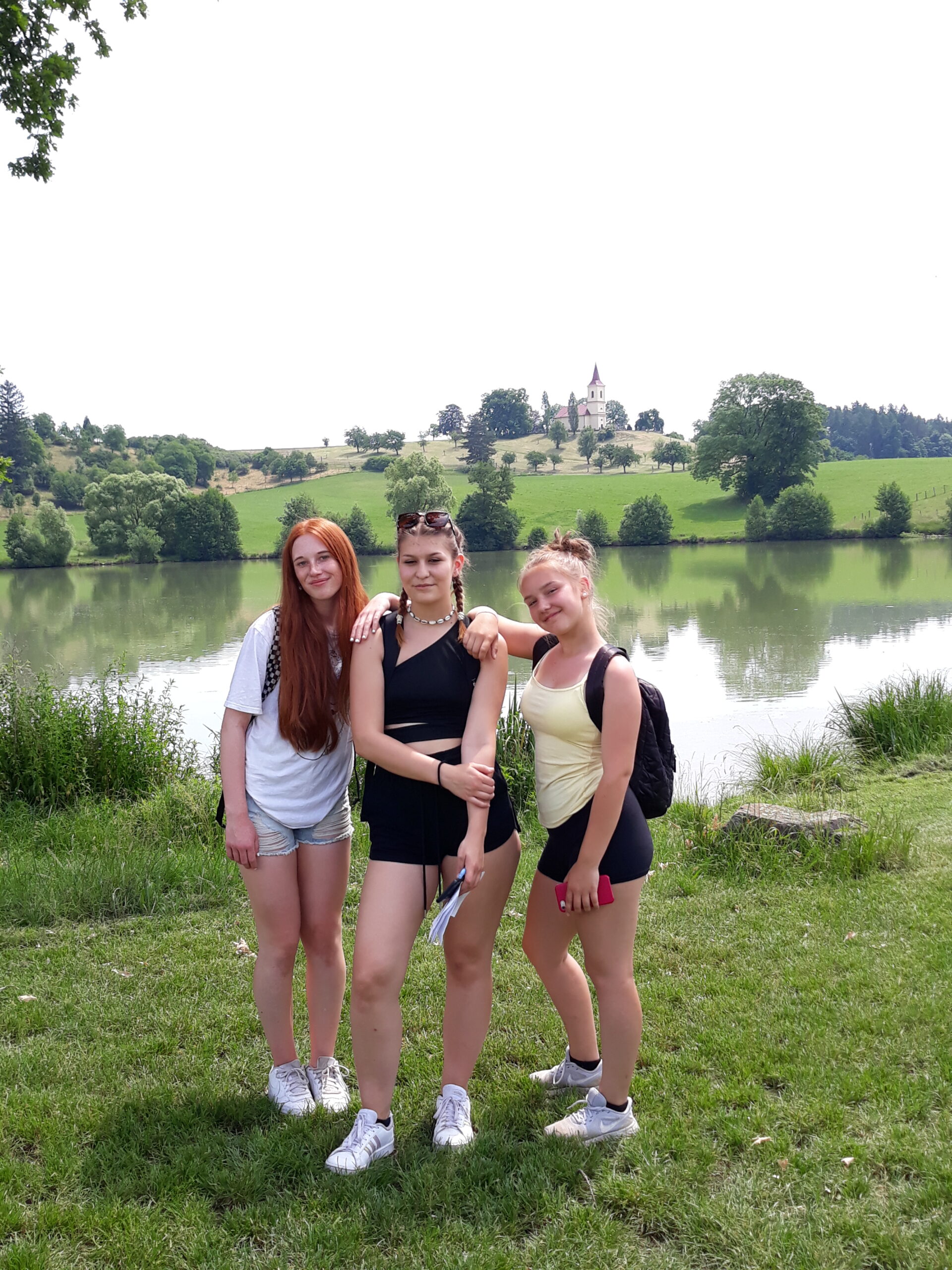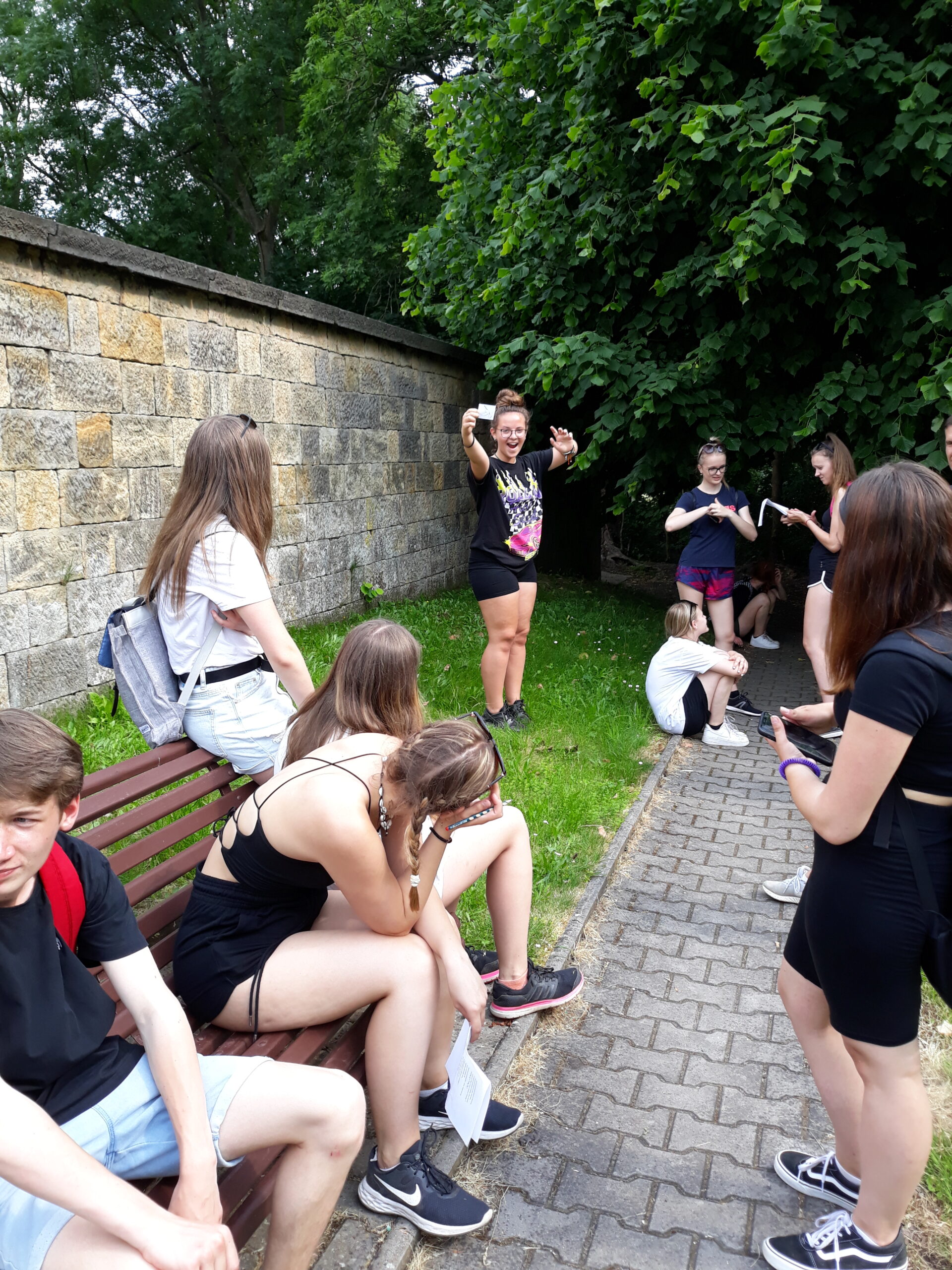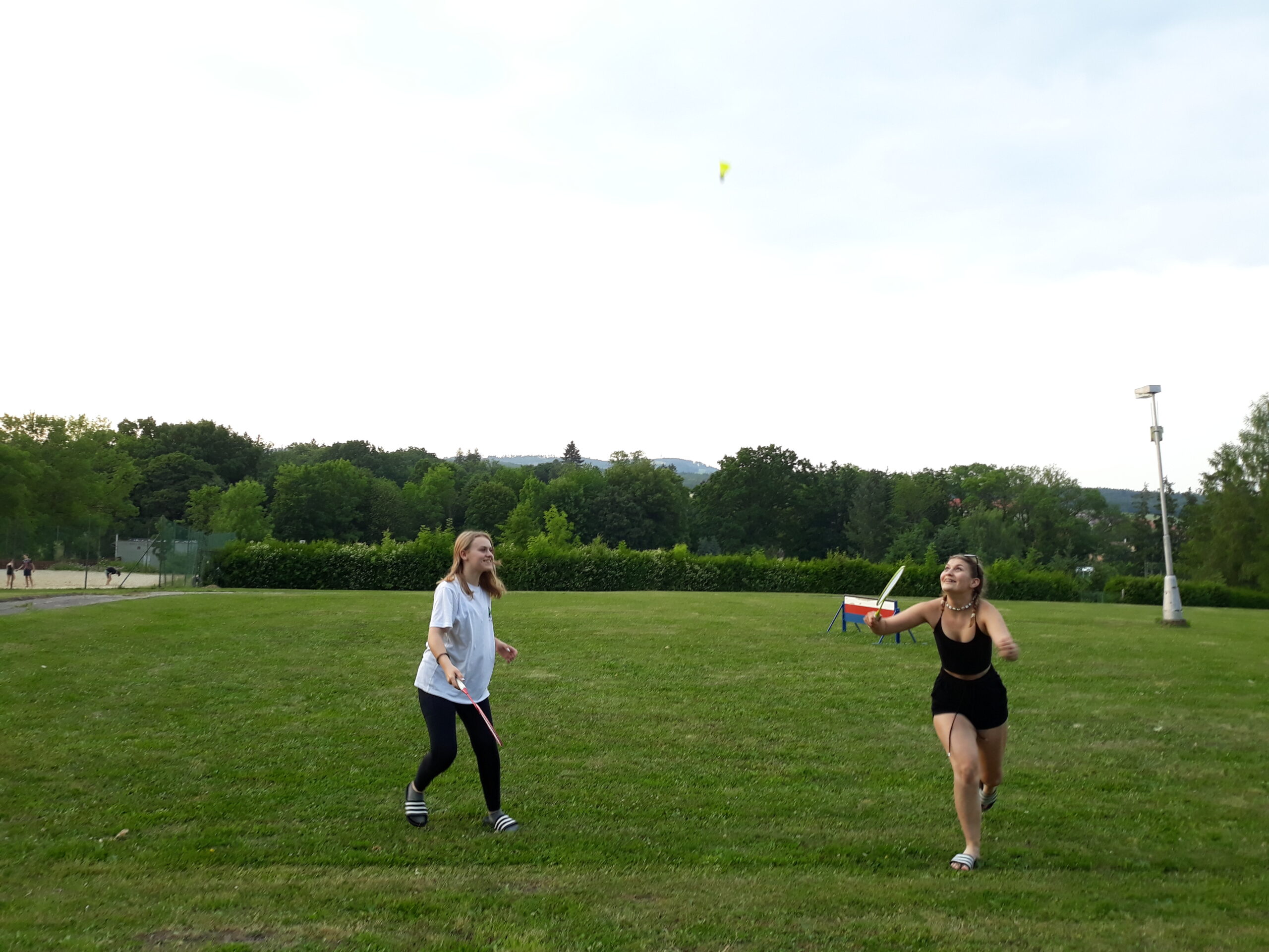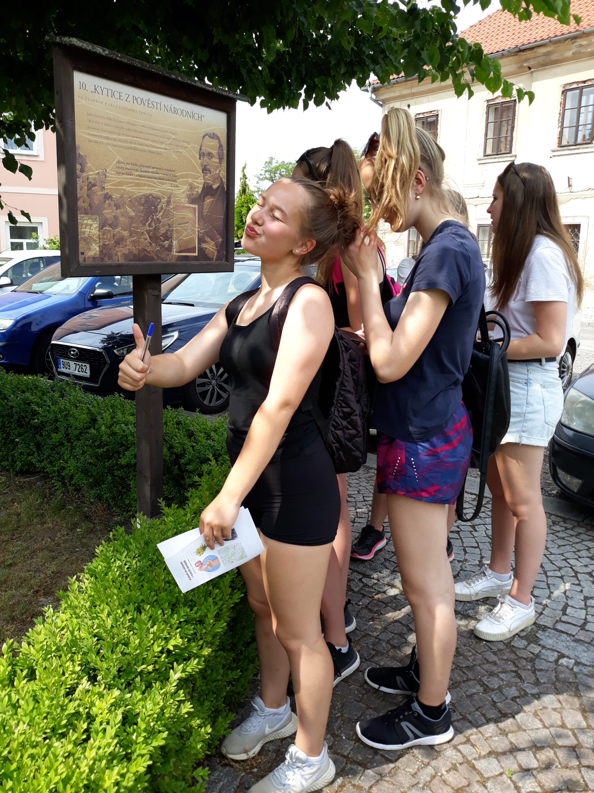 V pondělí ráno jsme tedy naložili zavazadla ochotnému tatínkovi A. Baliharové, kterému tímto moc děkujeme za jejich dovezení do kempu, a vydali se na cestu. Do Miletína jsme dorazili za poledne, odpočinuli si, posilnili se a hurá za Erbenem. Čekala na nás totiž šifrovací hra s hledáním indicií v terénu. Někteří žáci se do jejich hledání pustili opravdu s vervou a Erbenovu stezku jsme tak proběhli rychlostí blesku. A úspěšně – všechny indicie byly nalezeny! Kromě nich jsme ale po cestě potkali i několik známých tváří, milým setkáním bylo to s paní učitelkou z 1. třídy. Ta ale koukala, jak osmáci vyrostli! 🙂 Na miletínském náměstí na nás čekalo překvapení v podobě kamarádů z 9.A, kteří nás přijeli pozdravit. Zbytek dne jsme pak věnovali sportovním aktivitám v kempu, společně s Melčou a Natkou z 8.B. 🙂