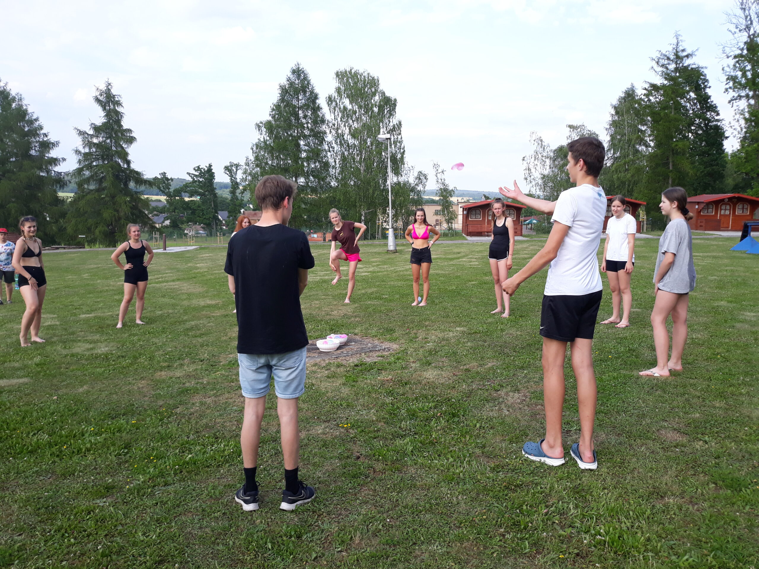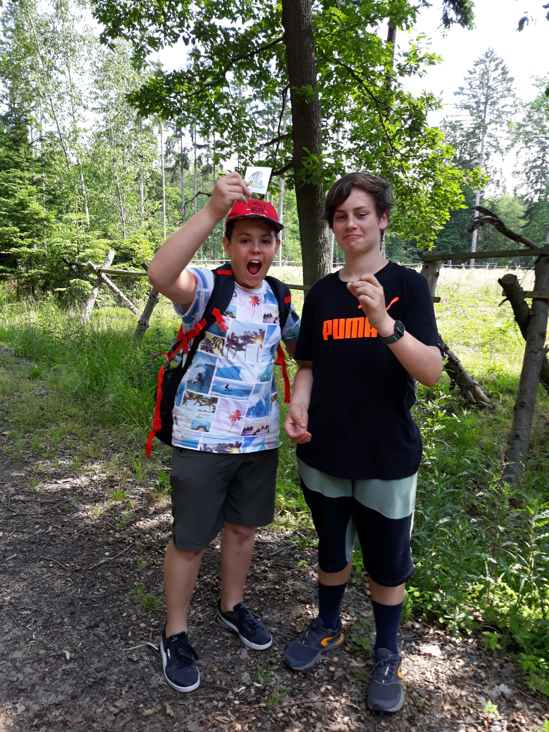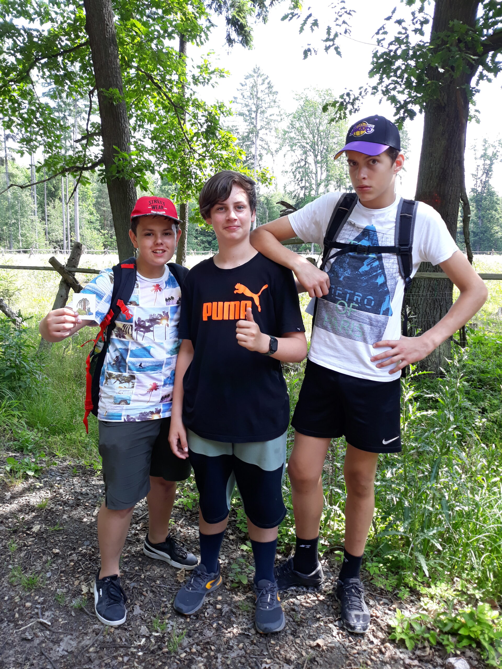 V pondělí ráno jsme tedy naložili zavazadla ochotnému tatínkovi A. Baliharové, kterému tímto moc děkujeme za jejich dovezení do kempu, a vydali se na cestu. Do Miletína jsme dorazili za poledne, odpočinuli si, posilnili se a hurá za Erbenem. Čekala na nás totiž šifrovací hra s hledáním indicií v terénu. Někteří žáci se do jejich hledání pustili opravdu s vervou a Erbenovu stezku jsme tak proběhli rychlostí blesku. A úspěšně – všechny indicie byly nalezeny! Kromě nich jsme ale po cestě potkali i několik známých tváří, milým setkáním bylo to s paní učitelkou z 1. třídy. Ta ale koukala, jak osmáci vyrostli! 🙂 Na miletínském náměstí na nás čekalo překvapení v podobě kamarádů z 9.A, kteří nás přijeli pozdravit. Zbytek dne jsme pak věnovali sportovním aktivitám v kempu, společně s Melčou a Natkou z 8.B. 🙂