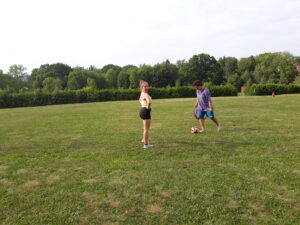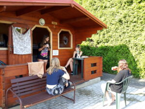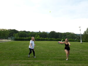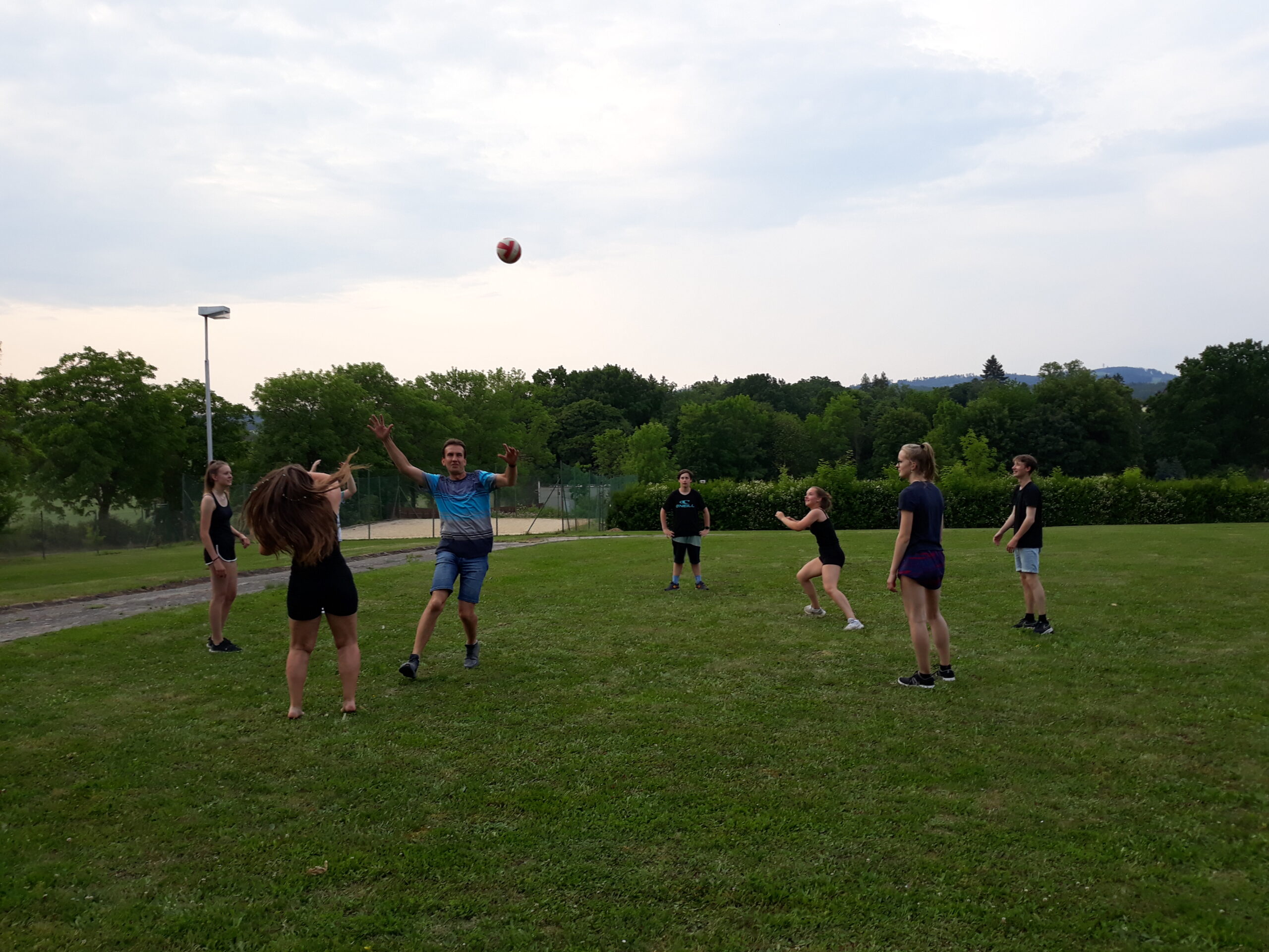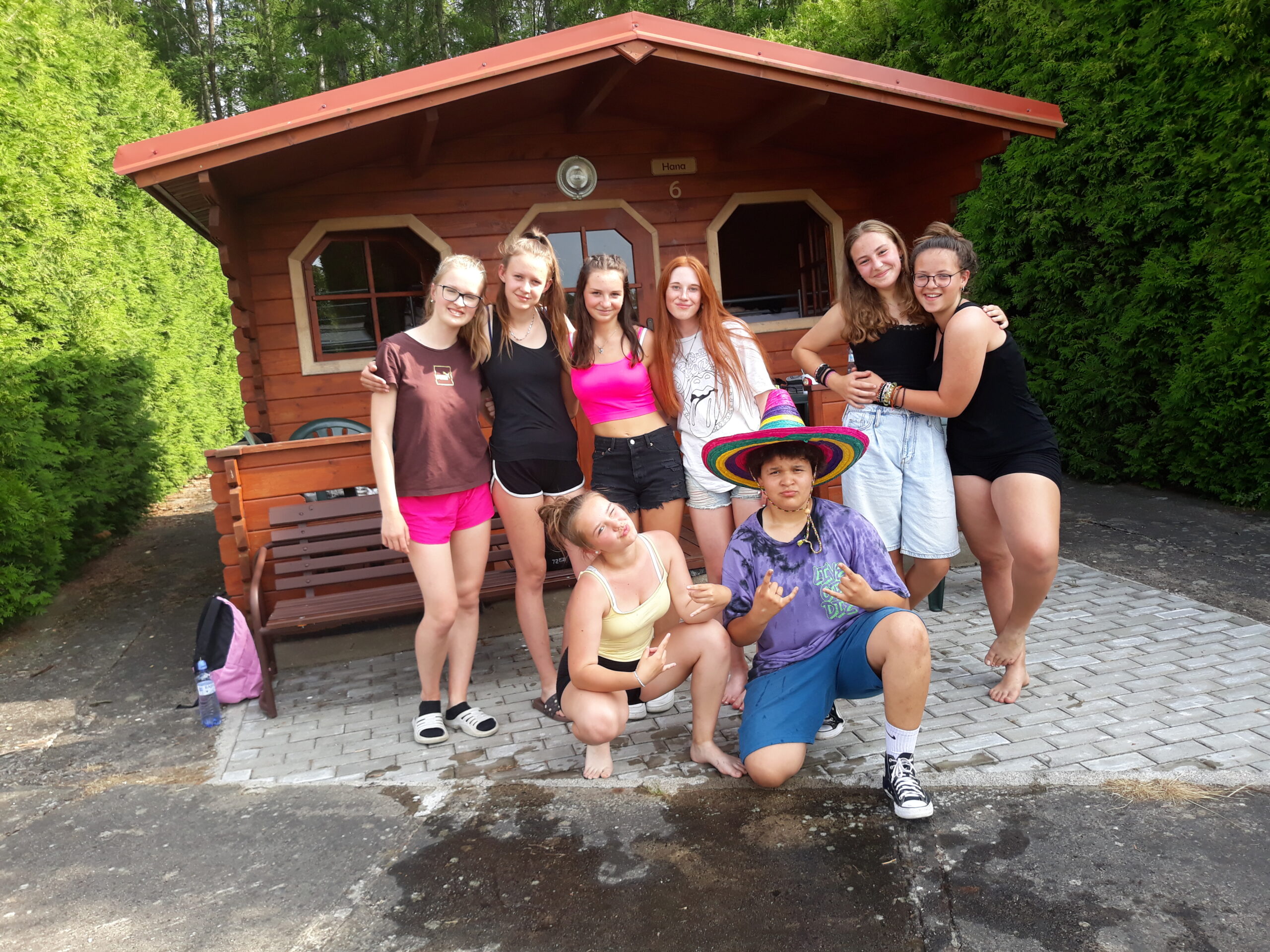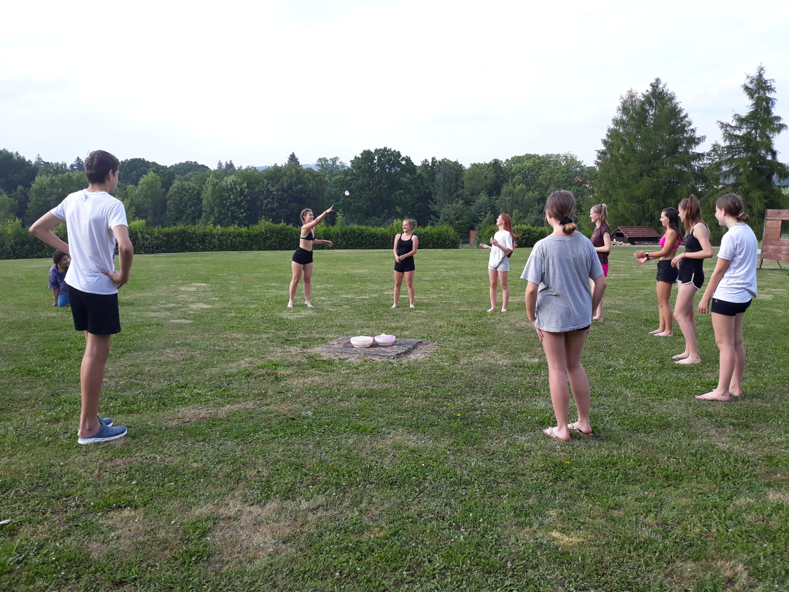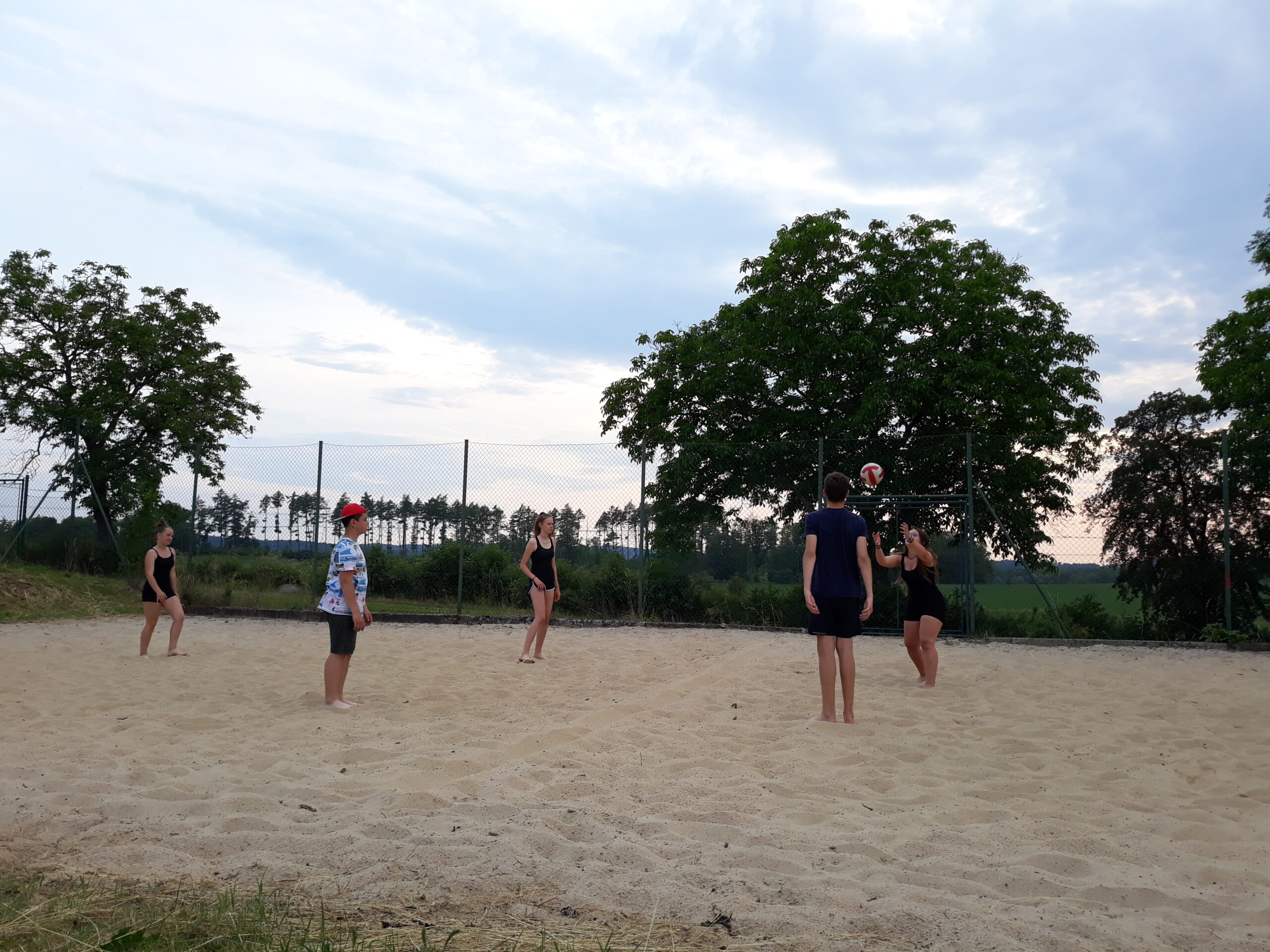 V pondělí ráno jsme tedy naložili zavazadla ochotnému tatínkovi A. Baliharové, kterému tímto moc děkujeme za jejich dovezení do kempu, a vydali se na cestu. Do Miletína jsme dorazili za poledne, odpočinuli si, posilnili se a hurá za Erbenem. Čekala na nás totiž šifrovací hra s hledáním indicií v terénu. Někteří žáci se do jejich hledání pustili opravdu s vervou a Erbenovu stezku jsme tak proběhli rychlostí blesku. A úspěšně – všechny indicie byly nalezeny! Kromě nich jsme ale po cestě potkali i několik známých tváří, milým setkáním bylo to s paní učitelkou z 1. třídy. Ta ale koukala, jak osmáci vyrostli! 🙂 Na miletínském náměstí na nás čekalo překvapení v podobě kamarádů z 9.A, kteří nás přijeli pozdravit. Zbytek dne jsme pak věnovali sportovním aktivitám v kempu, společně s Melčou a Natkou z 8.B. 🙂