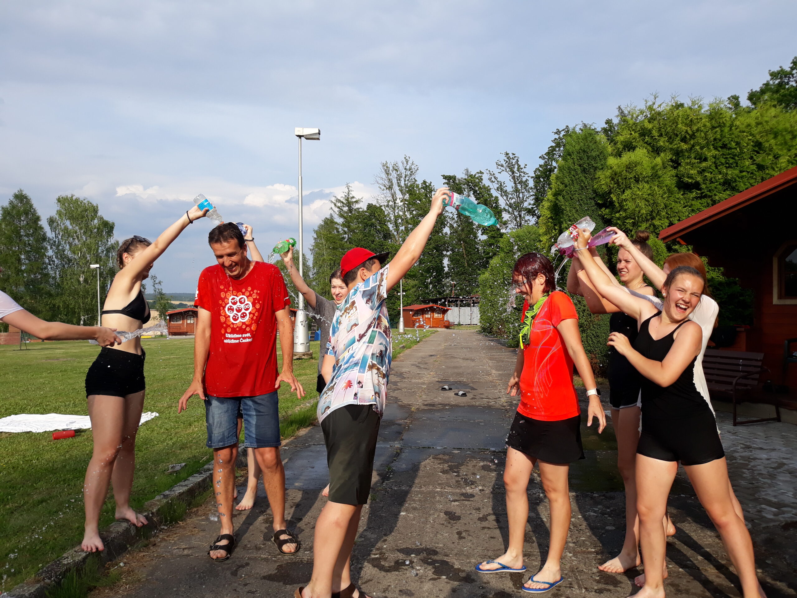 V úterý honba za indiciemi pokračovala, tentokrát ale byly pečlivě ukryté na cestě do Lázní Bělohrad. Během ní jsme si zopakovali některé Erbenovy balady a i přes úmorné vedro jsme zdárně dorazili do cíle. A opět úspěšně, i tentokrát si osmáci poradili se všemi úkoly a objevili potřebné indicie. K velkému setkání došlo na Byšičkách, kudy zrovna projížděli spolužáci z 9.B a kde na nás také čekalo překvapení v podobě občerstvovací stanice zajištěné bývalou paní asistentkou. Po obědě a doplnění zásob v Bělohradě jsme se autobusem vydali zpět do Miletína a nikoho už snad ani nepřekvapí, že pan řidič byl náš známý z Hořic. 🙂 Odpoledne se v kempu strhla vodní bitva (opět s návštěvou z 8.B) a následovaly sportovní aktivity a družení s fajn partou deváťáků z Městce Králové.