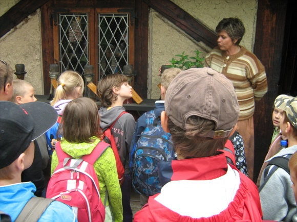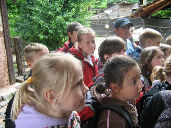 Ve čtvrtek 2. 6. druháci vyrazili na výlet. Nejprve jsme jeli do Přerova nad Labem. Za občasného deště, před kterým jsme se skrývali v chaloupkách, jsme si prohlédli skanzen. Velmi nás zaujala škola, kde pan učitel mohl používat rákosku a někteří žáci se za trest museli posadit pod obrázek osla do oslovské lavice. Po prohlídce skanzenu jsme vyrazili kousek dál do Ostré. S průvodkyní jsme prošli vesničku, viděli jsme, jak se vyrábějí svíčky a mýdla, splétají provazy nebo rýžuje zlato. Přitom jsme se dozvěděli, co všechno si můžeme vyzkoušet. Na závěr nás čekala bylinná zahrada i s bludištěm. Dost jsme si to všichni užili.