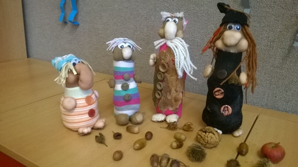 Pustili jsme se do nelehkého a časově náročného úkolu – šití skřítka. Každý z nás si v hlavě rozplánoval, jak bude skřítek vypadat. Jaké bude mít oblečení, vousy, vlasy, výraz v obličeji, atd. Na další hodinu jsme si přinesli potřebný materiál a pustili se do práce. Hlavu s velkým nosem, ruce a nohy jsme vyrobili z vaty a starých silonek, tělo a čepičku z papírových ruliček, vaty a ponožek a vlasy z vlny. Přívětivý výraz skřítkovi dodávají pohyblivá očička. Nakonec si každý dle fantazie skřítka dozdobil různými knoflíčky či přírodninami. Jsme opravdu malí velcí šikulové.