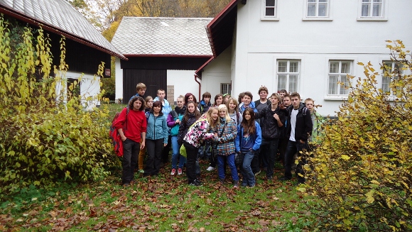 Pomalu jsme stoupali ke zřícenině hrádku Břecštejnu /Silberštejnu/, která odpočívá na rudohnědé arkózové skále. Poté jsme se vydali k místu, kde poslední dny pobýval Václav Havel. Chalupa spisovatele, dramatika a bývalého prezidenta Václava Havla odpočívala v mlžném oparu podzimní nálady a naproti ní se krčila chalupa režiséra Andreje Kroba, dvou mužů, kteří zde po mnoho let na zdejší zahradě pořádali o letních měsících „Zahradní slavnost“. Tu připomínala malá dřevěná divadelní scéna zapadaná podzimním listím. V sadu za domem jsme uviděli nově instalované kamenné srdce, které vydala řeka Vltava jeho manželce, a ta je umístila do místa, které bylo Václavu Havlovi nejbližší. Poté jsme si prohlédli o něco výše za chalupou při silnici na Mladé Buky informační tabuli o tomto místě. A pak jsme se již vydali k domovu. Ve škole jsme shlédli film „Fenomén Hrádeček“ aneb „Duchové pod Brečtejnem“ a diskutovali o tomto místě před listopadem 1989, po listopadu a nyní… Společně jsme pocítili smutek, který v nás zajisté navodil i cyklus roku, během kterého jsme toto místo navštívili. Nebo to snad byl i jakýsi závan dnešní „blbé nálady“, jak říkával Václav Havel v porovnání s tím, s jakými ideály v listopadu 89 se mnozí právě odtud z Hrádečku vydali do veřejného života. Místo je stále stejné, ale hra, které jsme všichni součástí, jaksi poskočila již do třetího jednání…