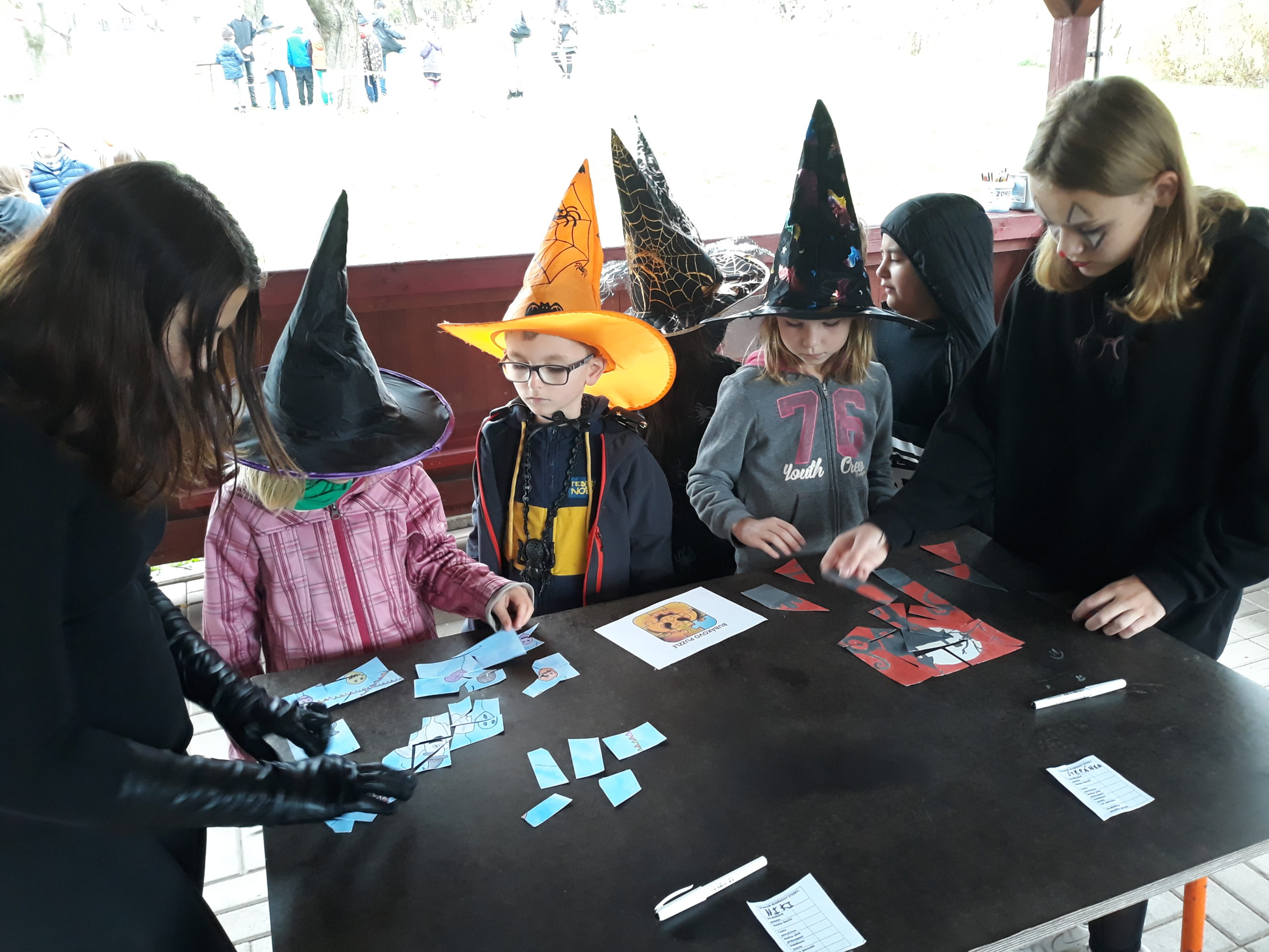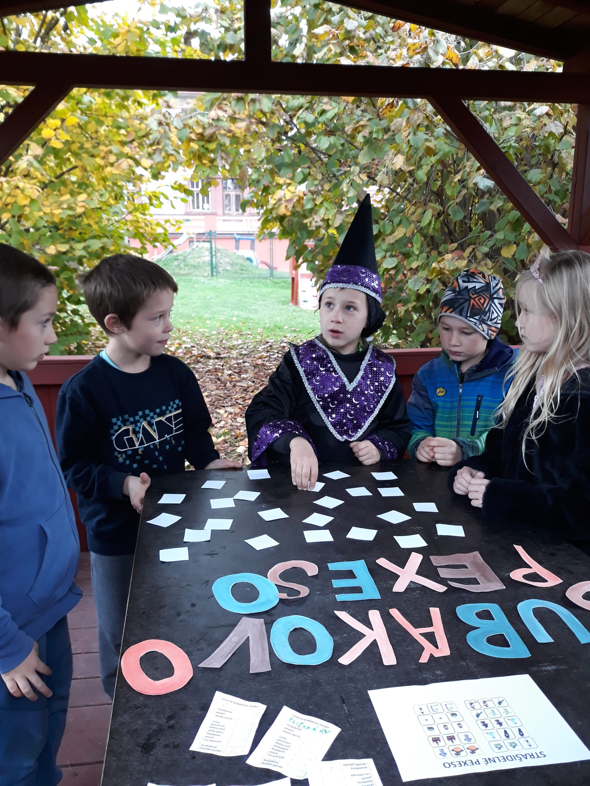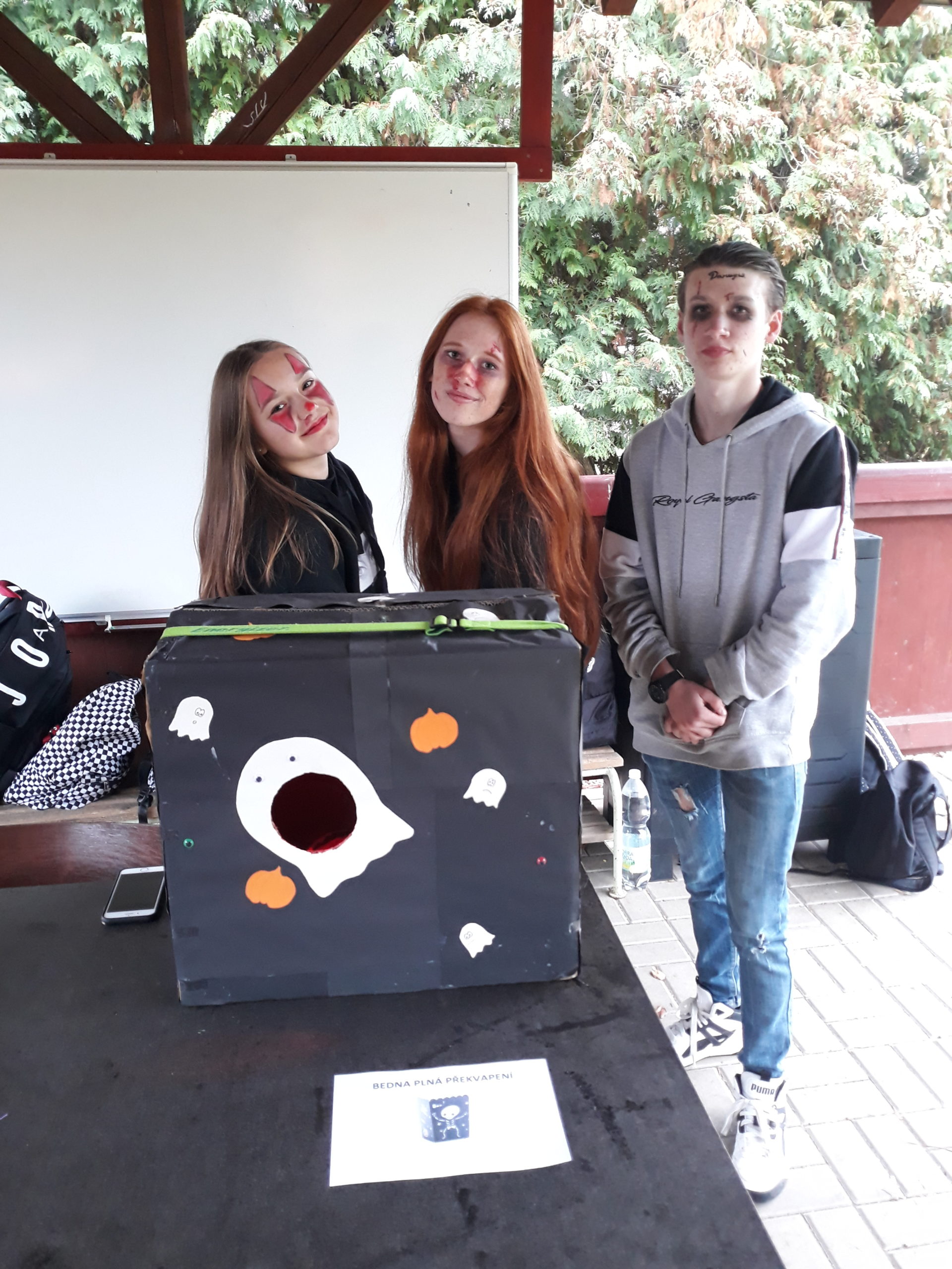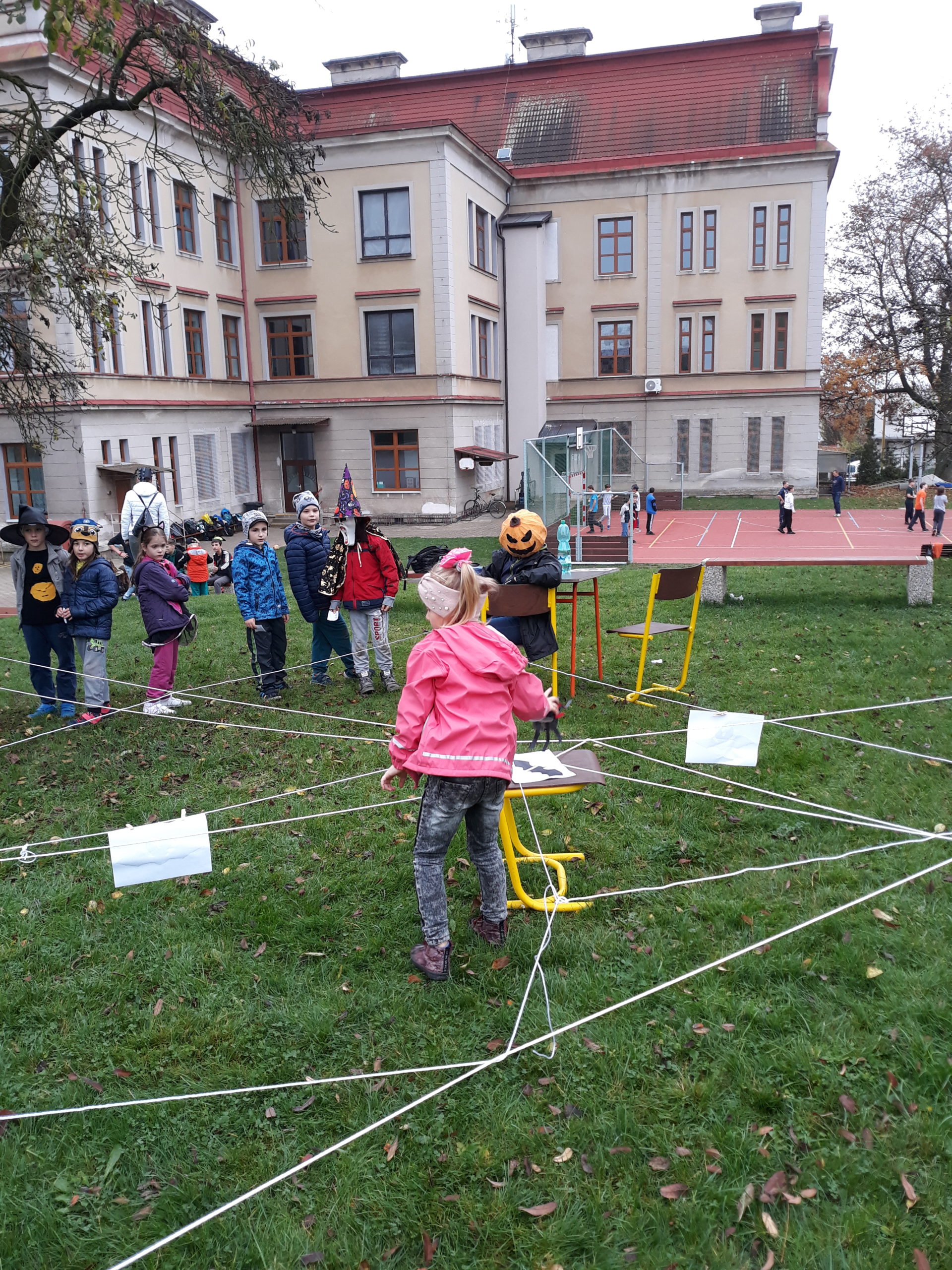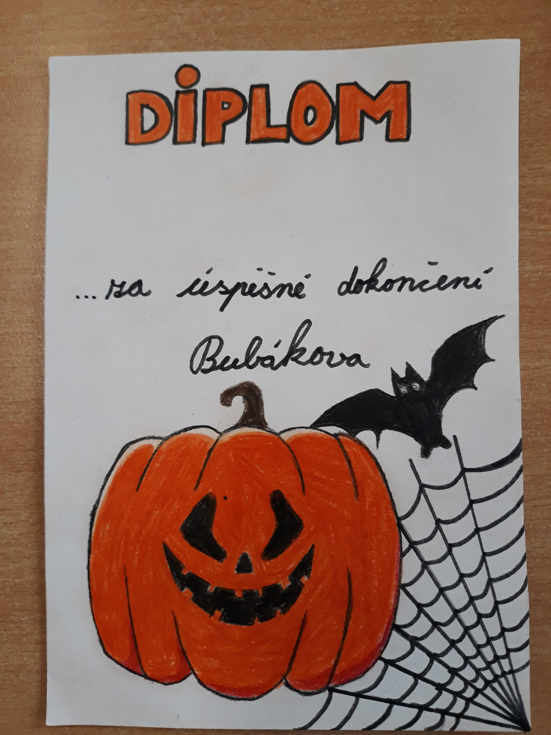 V úterý 1. 11. si žáci 8.A připravili odpolední strašidelnou stezku Bubákov pro děti ze školní družiny. Sychravé podzimní počasí dokreslovalo tajemnou atmosféru školní zahrady, která se proměnila v strašidelnou stezku s rozličnými úkoly, které děti musely plnit. Na zahradě bylo možné spatřit přehlídku duchů, bubáků, čarodějů a jiných strašidel pohybujících se mezi pavouky či netopýry. Na některých stanovištích musely děti ukázat, jakou mají paměť, když hrály strašidelné pexeso nebo si měly zapamatovat tajemné čarodějné rekvizity. Velkou dávku odvahy určitě chtělo stanoviště s poznáváním věcí poslepu, a že o hady, myši nebo pavouky nebyla nouze. Slalom mezi duchy nebo pohyb pavučinou zase ověřovaly mrštnost dětí. Naši nejmenší se ale strašidelných úkolů nezalekli a úspěšně absolvovali celou stezku. Za to si zasloužili diplom i sladkou odměnu.