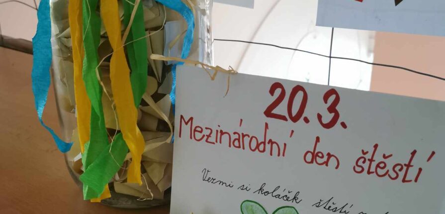 Ve středu 20. března se po celém světě slavil Mezinárodní den štěstí. Prvňáčci se rozhodli tento den oslavit tím, že rozdávali štěstí v naší škole. Díky tomu mohou žáci nalézt na chodbě sklenici plnou koláčků štěstí, ve kterých se ukrývají vzkazy. Pro učitele zase vytvořili sovičky pro štěstí.