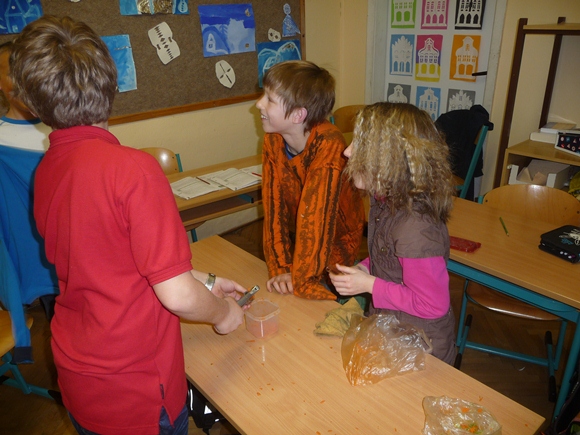 Máme to štěstí, že v našich zeměpisných šířkách máme vody zatím dostatek a většina z nás ji považuje za samozřejmost. Abychom mohli vodu chránit, je třeba ji co nejlépe poznat a objevit její skrytá tajemství. Děti ze 4. A se na cestu za poznáním vody vydaly v hodinách přírodovědy. V prvních „vodních“ laboratořích  se učili, jak se správně měří objem vody v odměrném válci či kádince a jaká je souvislost mezi objemem a hmotností.