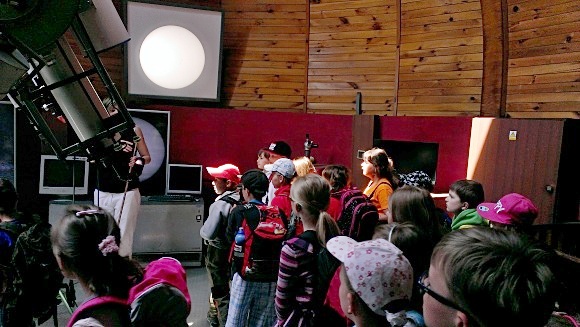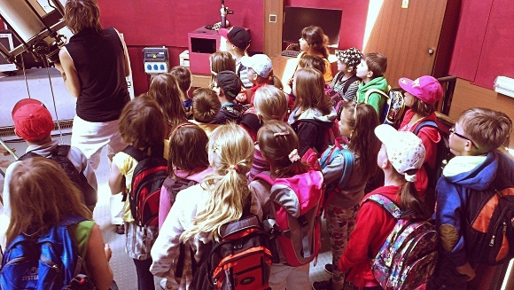 V pondělí 8. června jsme vyrazili s třeťáčky na exkurzi do hvězdárny v Hradci Králové. Větší část programu jsme strávili v digitálním planetáriu, kde jsme pozorovali noční a denní oblohu, proletěli jsme sluneční soustavou, podívali se na Měsíc a některé planety. Vše jsme završili pozorováním Slunce dalekohledem. Již nyní se těšíme na další návštěvu. 😉