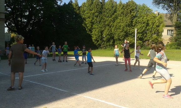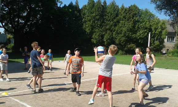 Téměř na konci školního roku pořádali žáci 9.A turnaj ve vybíjené pro 1. stupeň. Aby nedošlo k újmě na zdraví, tak pouze pro starší ročníky, tj. 3. až 5. třídu. I pro nehrající děti byl připraven doprovodný nejen sportovní program. Jelikož ten den dosahovala ručička teploměru tropických teplot nad 30 stupňů, vzbudilo mezi dětmi největší zájem kropení hřiště, kterému se asi děti snažily zabránit a proto vlastními těly bránily kapičkám vody v dopadu na hrací plochu. 🙂 Tato obětavost jim byla odměněna v podobě příjemného osvěžení! A jak celý miniturnaj dopadl? Žáci pátých tříd neponechali nic náhodě a tak se proti sobě ve finálovém derby utkaly dvě paralelní třídy – 5.A a 5.B. Dlouhodobou převahu žáků 5.B až na poslední chvíli zastavil kapitán „áčka“ Tomáš Vojtíšek, nicméně jelikož vypršel stanovený čas, ani on nezabránil tomu, že třída 5.B, která mezi sebou měla určené i funkce trenéra, manažera, maséra a kdoví co ještě, dosáhla celkového vítězství a mohla se tak radovat z výhry, kterou byl plný kbelík naplněný vodními balónky. Jak s nimi žáci naložili? To si asi dovedete představit… 🙂