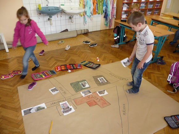 Prvňáčci se pokusili o první miniprojekt a to Mapování okolí ZŠ Na Habru. Rozdělili jsme se na dvě skupiny, z nichž každá měla za úkol prozkoumat určitou část města v blízkosti naší školy. Pojmenovali jsme si nejbližší ulice, výrazné objekty a prohlédli si budovu ZŠ ze všech světových stran. Celé mapování jsme zdokumentovali fotografiemi. Další den jsme dle GoogleMaps nakreslili letecký pohled na naši školu, dokreslili hlavní ulice a k nim vlepili fotky navštívených míst. Někteří z nás zvládli zapsat názvy některých ulic a budov. Vznikla krásná mapa, která zdobí chodbu v přízemí. V říjnu chystáme další projekt, musíme ještě zapracovat na kázni při volnějším režimu práce, na samostatnosti a vzájemné spolupráci.