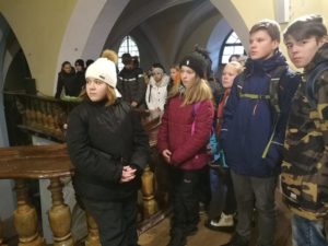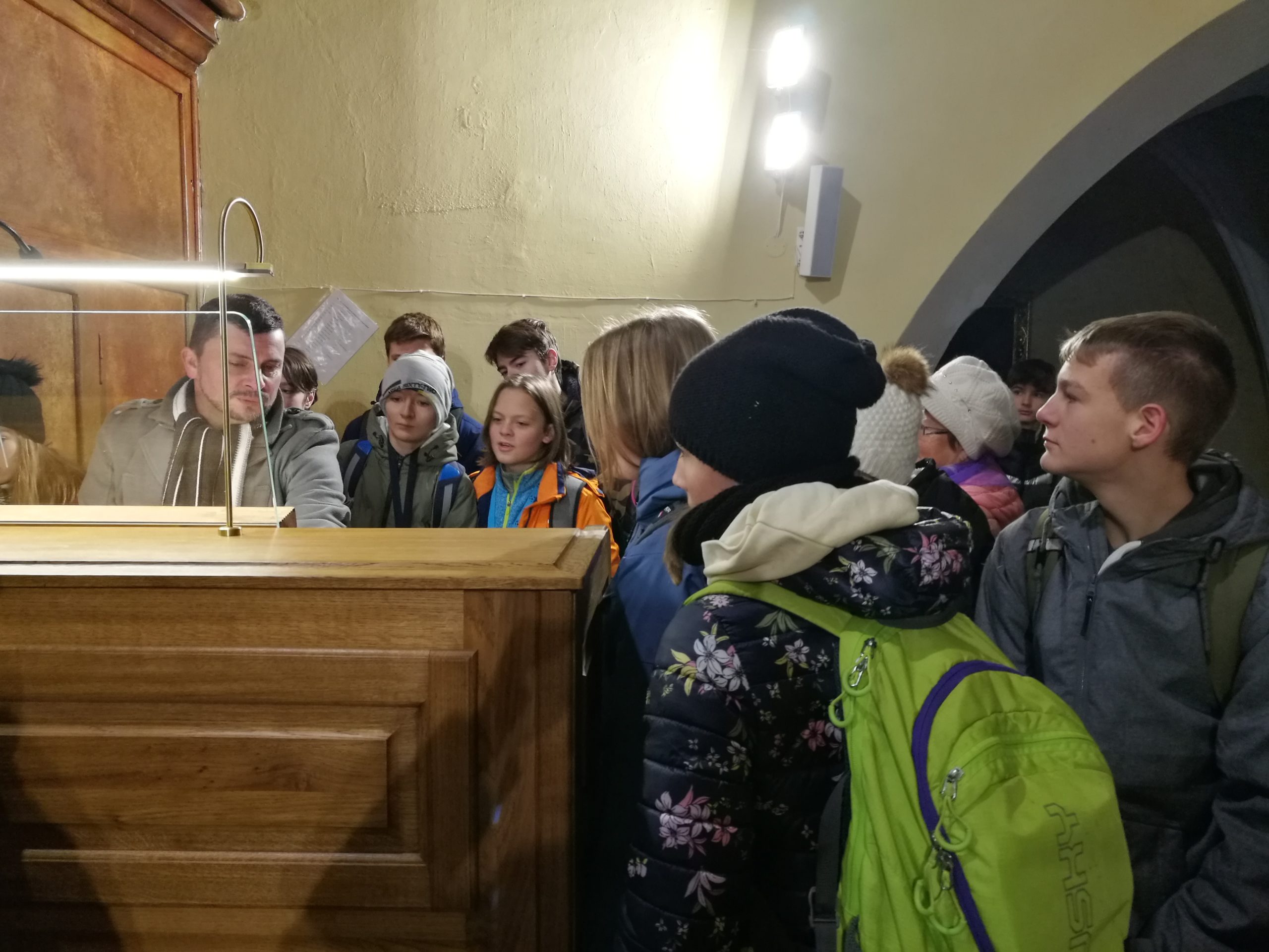 Poté jsme se přemístili k další části našeho předvánočního výletu. V kostele sv. Vavřince nás čekala poutavá ukázka varhan. Varhaník Ondřej Vávra nám názorně předvedl a vysvětlit princip fungování a zahrál nám známé melodie. Vrcholem byla skladba doprovázená zpěvem p. uč. Hájkové, které patří velký dík, za organizaci a hudební výchovu v praxi.