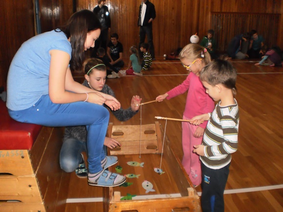 Po odehrání divadla ve školce jsme se přemístili do tělocvičny naší školy, kde si deváťáci pro školkové děti připravili celou řadu zábavných her a úkolů. Děti tak mohly zkusit ulovit svého vánočního kapra, složit vánoční stromeček, vybarvit si vlastní vánoční ozdobu a mnoho dalšího.