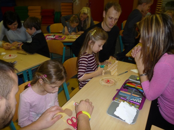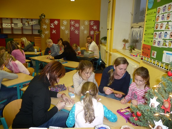 I v předvánočním shonu jsme si našli čas pobýt společně s rodiči ve škole a strávit tak pár pěkných chvil při výrobě vánoční dekorace soba. Na tvoření jsme použili papírové tácky, dekorační papír, ozdobné drátky a bambulky. Jak se sobíci povedli, můžete vidět na fotografiích. Velký dík patří mamince Terezky Žabokrtské za organizaci dílniček.