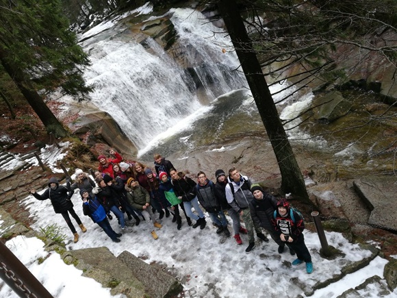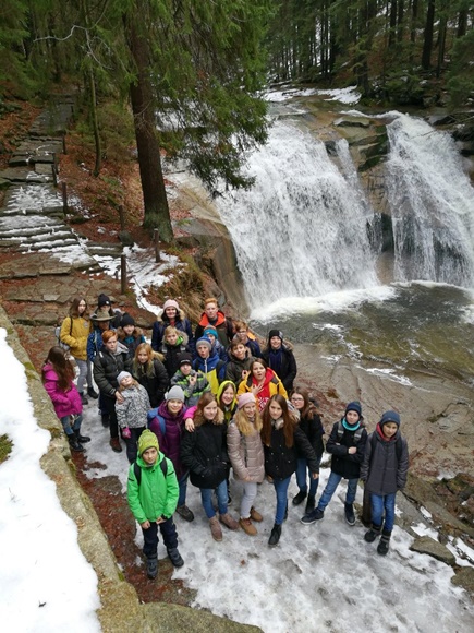 Předvánoční shon jsme si zpestřili vánočním výletem do Harrachova. Dřívější odjezd ještě za tmy nás neodradil, protože nás čekal nabitý program. Nejdříve naše sdružené třídy navštívily sklárnu, kde viděli výrobu rodinné firmy s 307 let dlouhou tradicí. Konec prohlídky proběhl v prodejně skleniček různých tvarů, kde si snad každý něco vybral. Teplo sklářských pecí jsme pak rádi vyměnili za příjemný horský vzdoušek a drobek sněhu cestou k Mumlavskému vodopádu. Túru do kopce i z kopce nám navíc zpestřilo náledí.