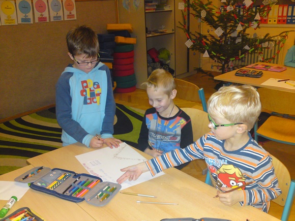 Ve škole jsme se rozdělili do smíšených skupin. Každá skupina pracovala na jedné vánoční tradici. Druháci předčítali zadání prvňákům a společně zpracovali plakát, kde odpovídali na zadané otázky. Nesměl chybět ani obrázek a závěrečná prezentace. V tradicích budeme pokračovat i při vánoční besídce.