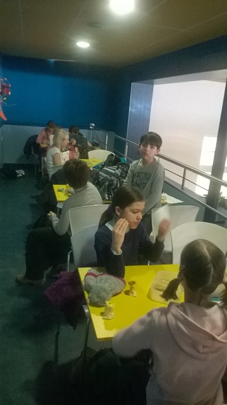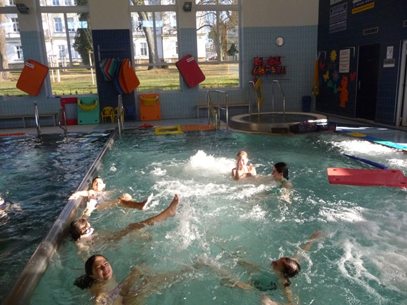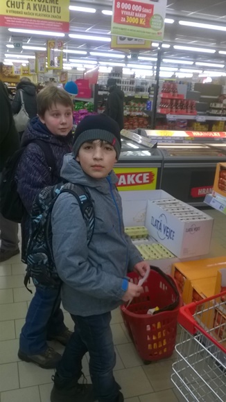 Páteční ráno jsme zahájili plaváním v místním sportovním zařízení. Rozdělili jsme se na skupiny do dvou bazénů, trochu si zaplavali, zaskákali, zadováděli a potápěli se. Po plavču jsme na galerii v bazénu naplánovali další program, což byl nákup surovin na přípravu oběda. Podle receptu si každá skupinka sepsala seznam na nákup a vyzvedla u učitele peníze. Zároveň jsme zde zdravě posvačili – cereální pečivo s pomazánkou a jablko. V Penny marketu měly skupinky 20minut čas na nákup všech ingrediencí. Orientaci po obchodě zvládly všechny děti na jedničku.